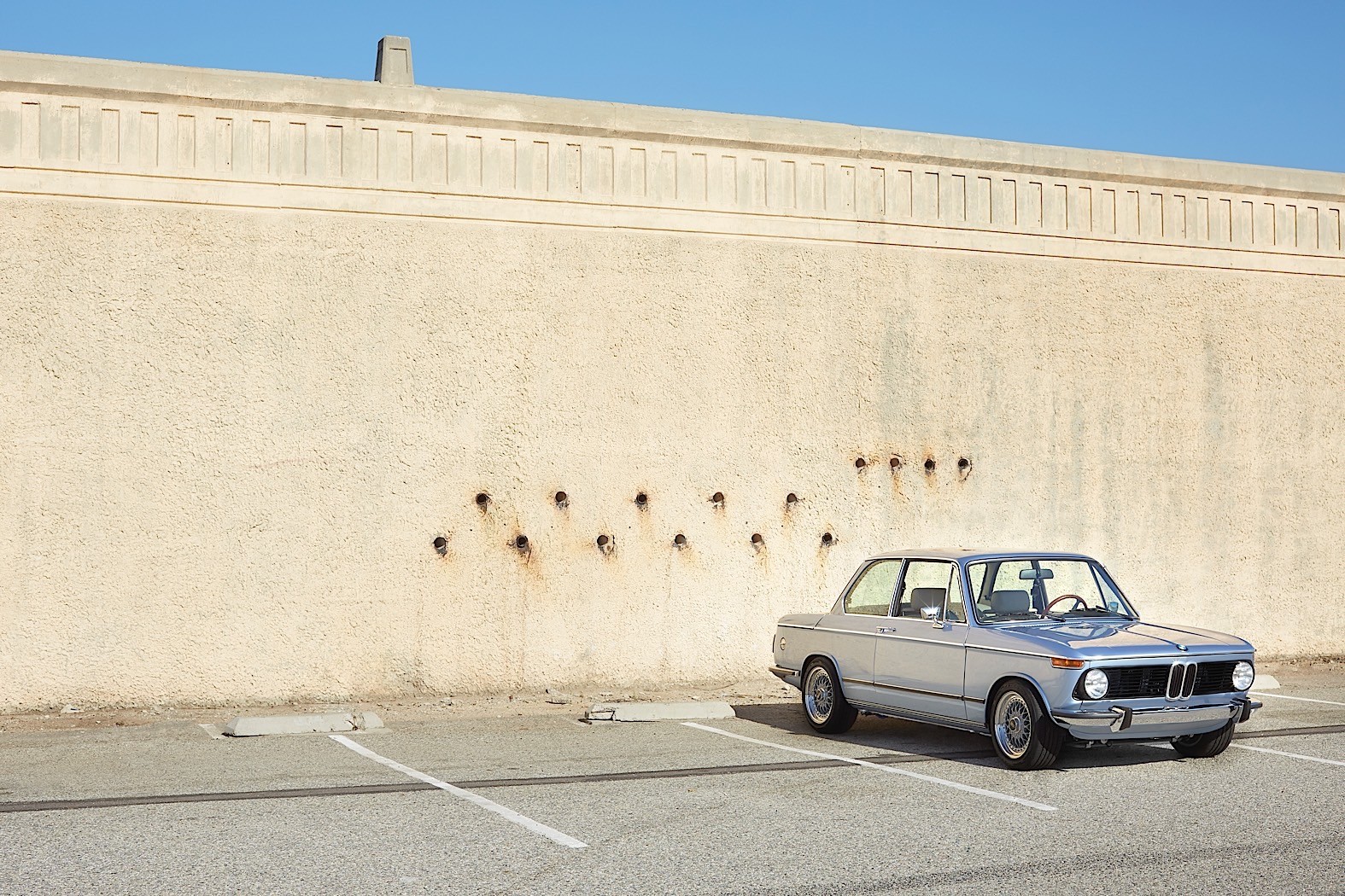 Clarion maintained a factory-like appearance on the outside of the car with a fresh coat of Fjord Blue BMW paint and NOS BMW glass, seals and lighting. Modifications include European-spec bumpers and a set of restored and period-correct German-made BBS RS honeycomb-style three-piece wheels.