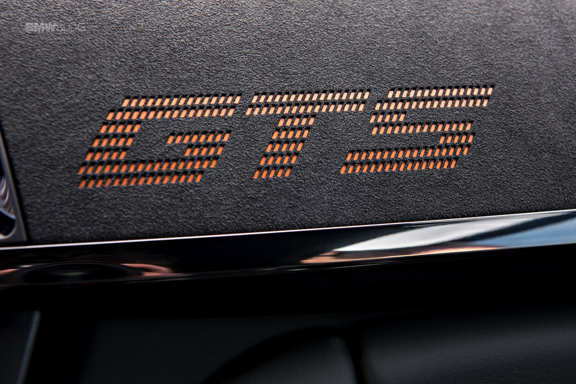 The front view is as eye catching as the rest of the car, namely the front grille with M double bars in black and the powerfully sculpted front apron with its trio of large air intakes, the carbon-fiber-reinforced plastic (CFRP) bonnet painted in body color weighing 25% less than an aluminum equivalent. The front end’s weight-minimized splitter is made from lightweight exposed carbon fiber, has a contrasting stripe in bright Acid Orange running along its leading edge and can be set in two positions, for road and track.