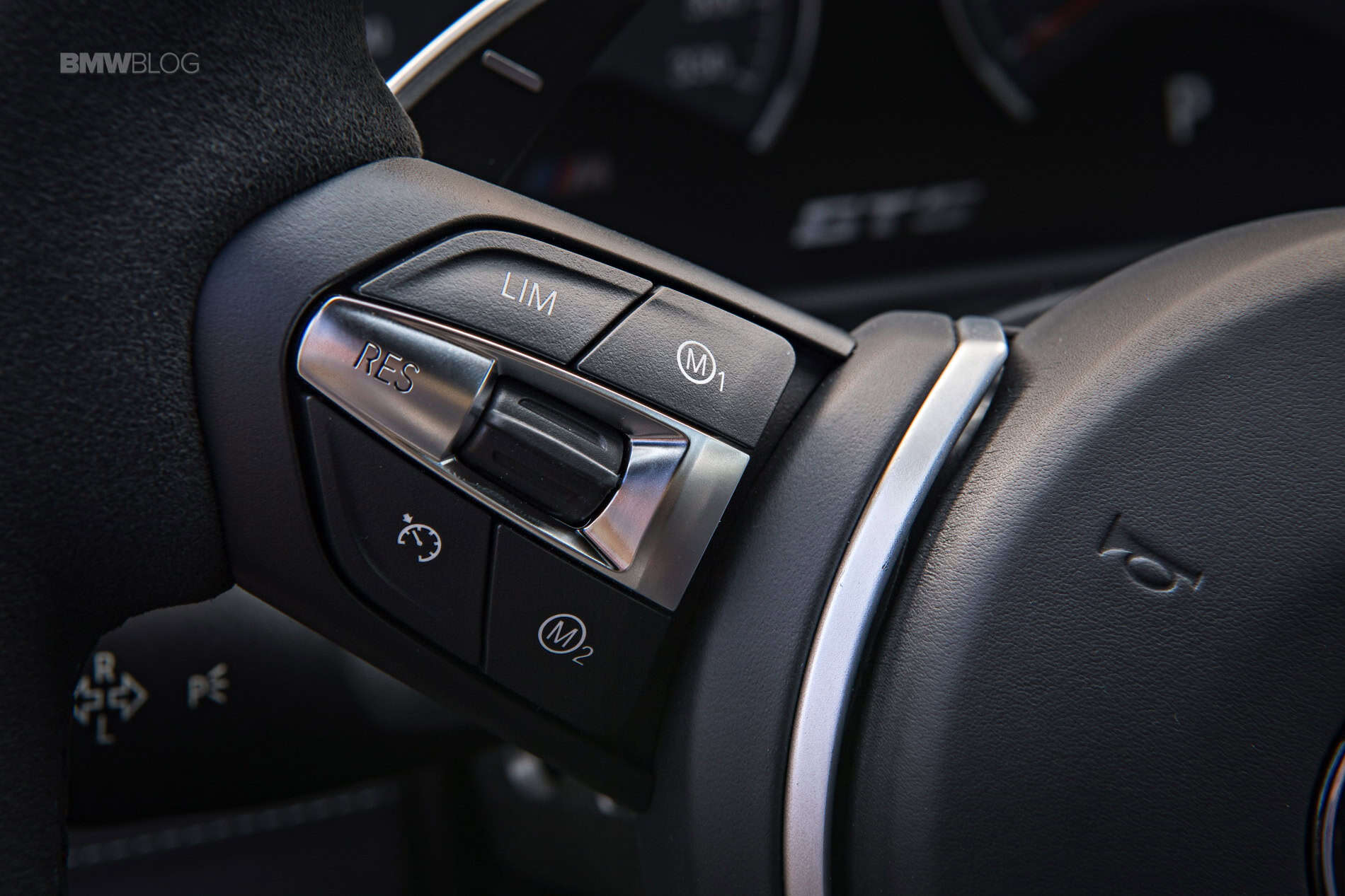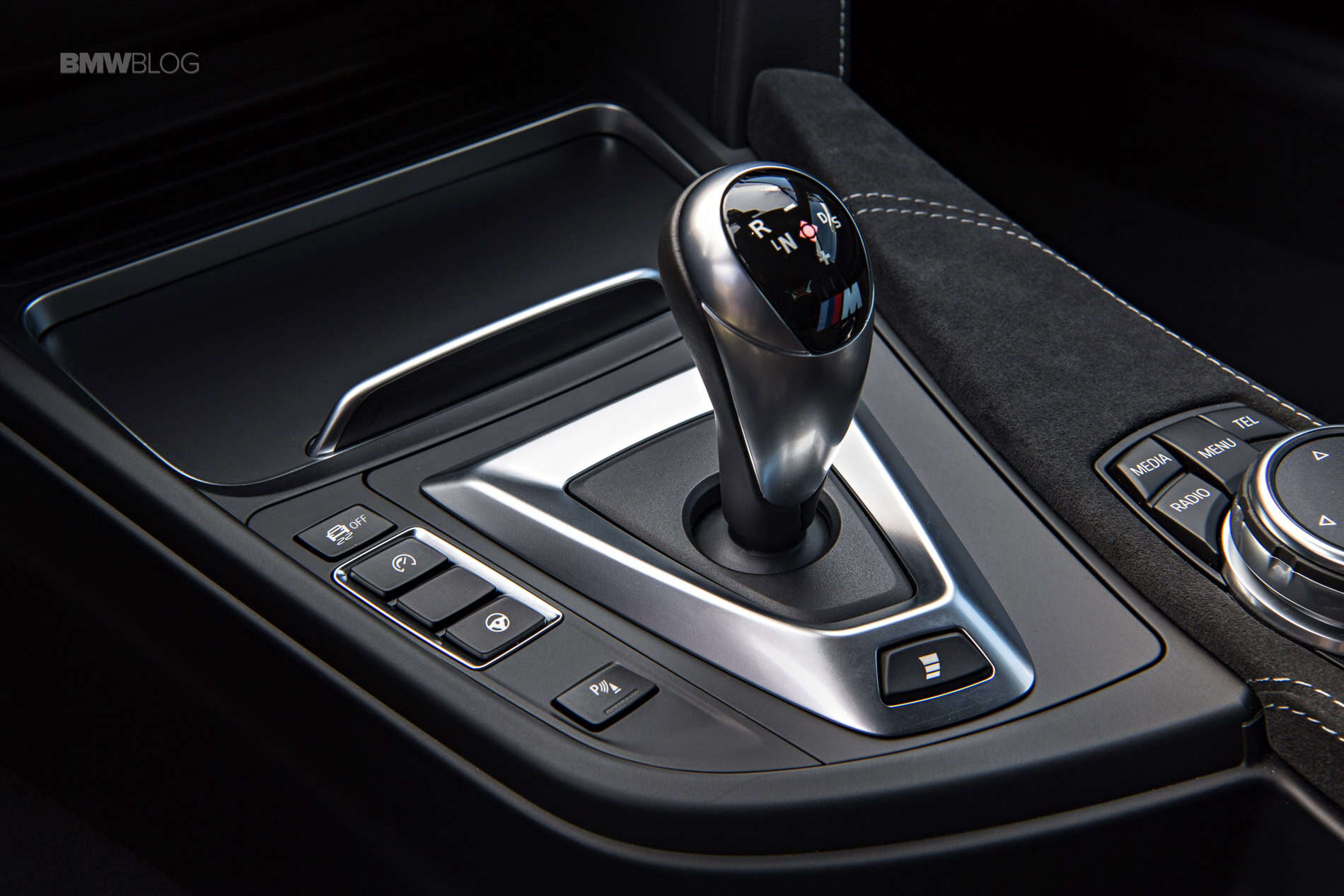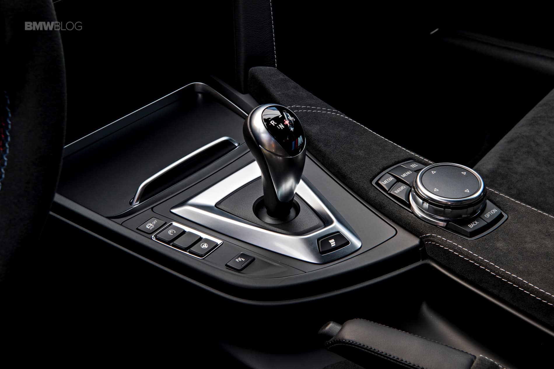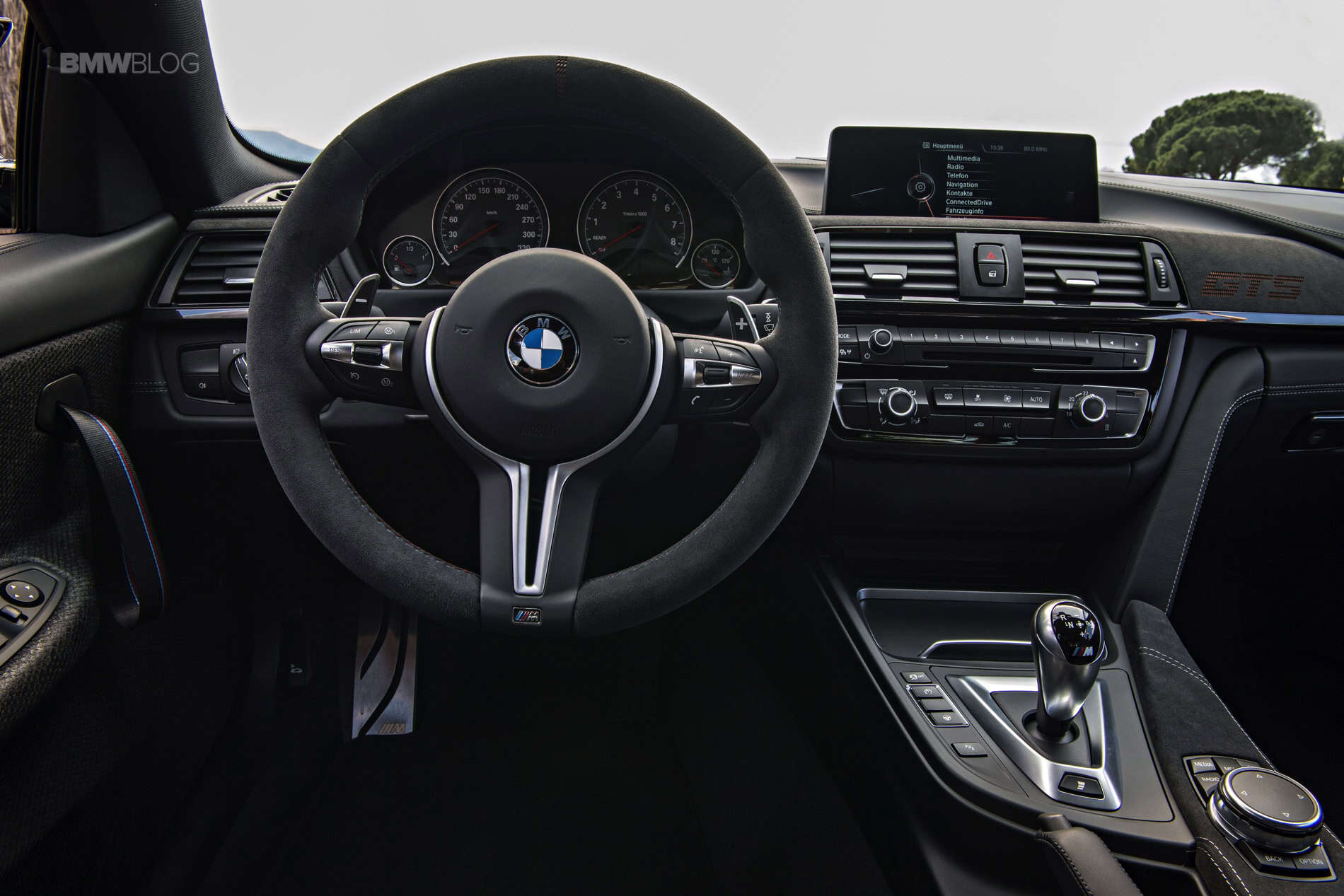 When you enter the jet fighter like cabin you immediately sense this is a special M4 as you realize the rear seats are gone but also due to the abundant presence of carbon fiber, aluminum and Alcantara wherever you stare at. The M sports steering wheel, likewise covered in exclusive, anthracite colored Alcantara, pays tribute to motor racing and it seems unwilling to let go of the palm of your hand once it grabs it. And then the carbon-fiber bucket seats (for driver and passenger) use a specific construction to enables a very low-set seat surface and with compelling lateral support but reserving the necessary comfort over long distances.