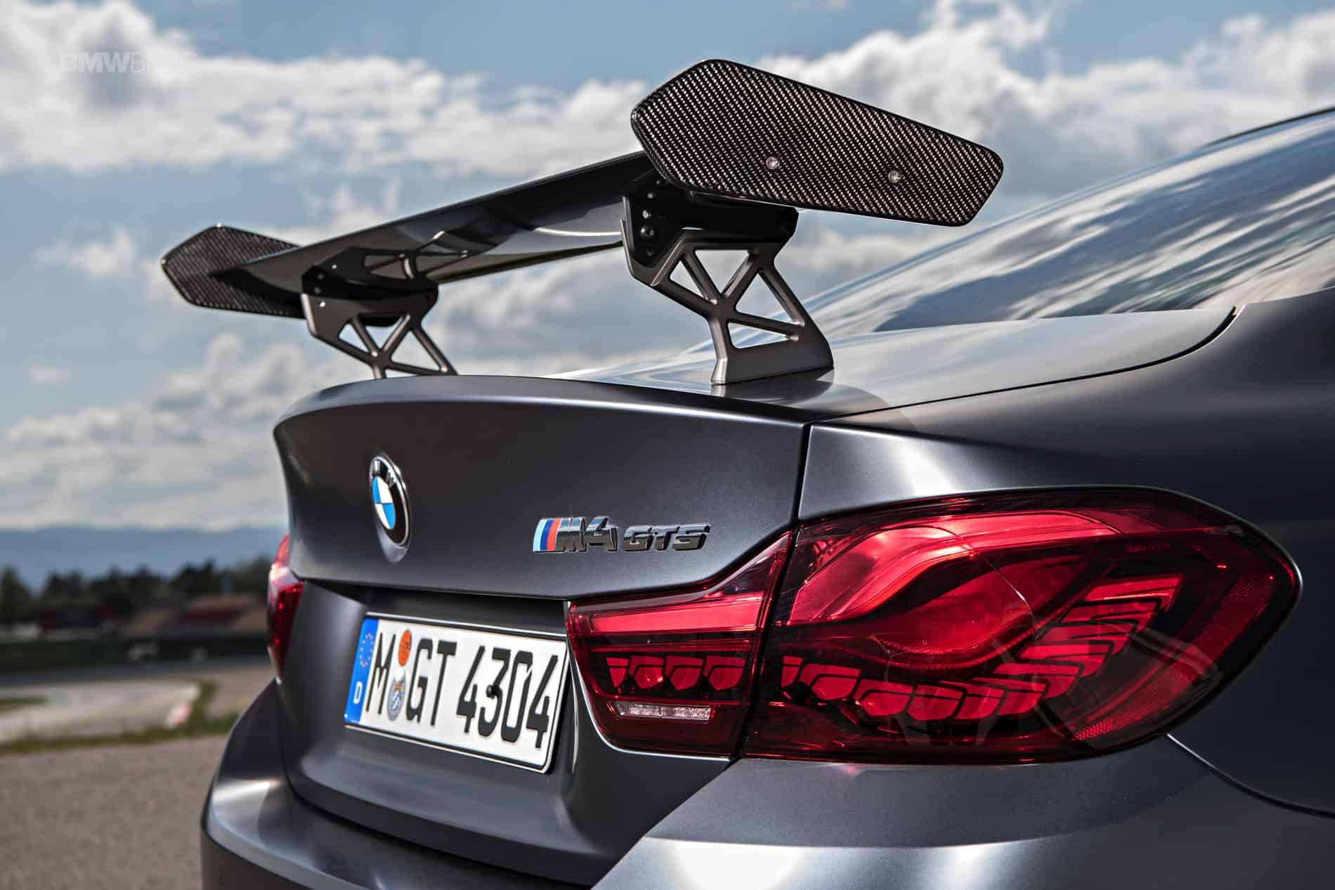 Straight from the first visual contact the M4 GTS prepares you for what lies ahead, starting with the world’s first application of the organic light-emitting diodes (OLED) technology on the rear lights, which produce a more homogeneous illumination effect and have the ability to trigger individual light modules separately. This tail end can be easily distinguished from that of the BMW M4 Coupe by means of the adjustable (in three positions) carbon-fiber rear wing on the boot lid, the exhaust system with its two pairs of titanium tailpipes here with 80 mm diameter and laser-engraved M logo, framed by a structured rear apron.