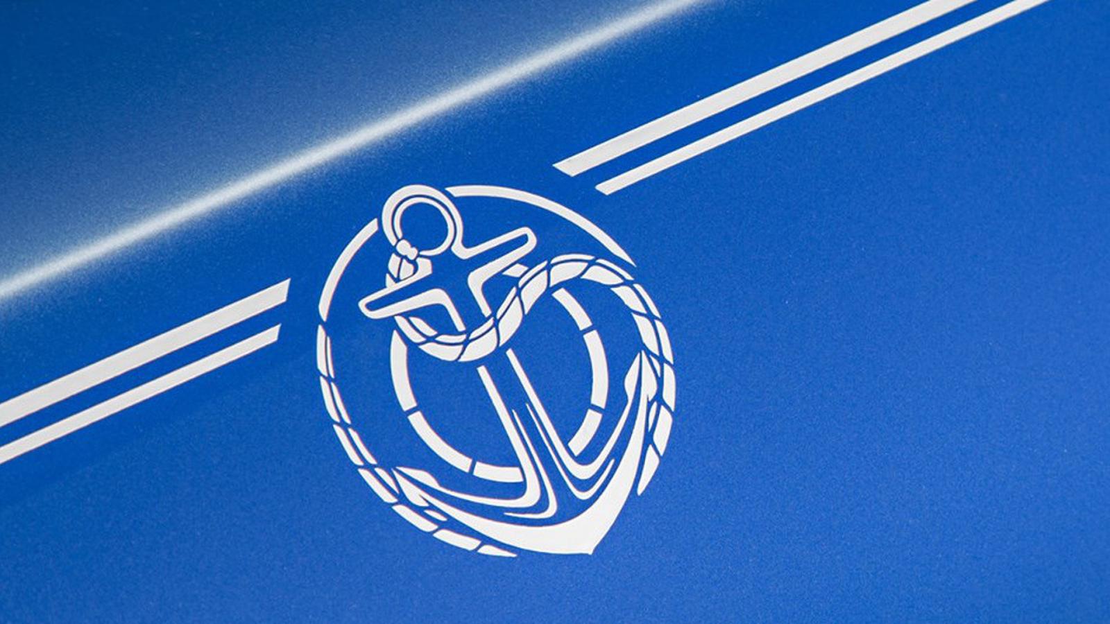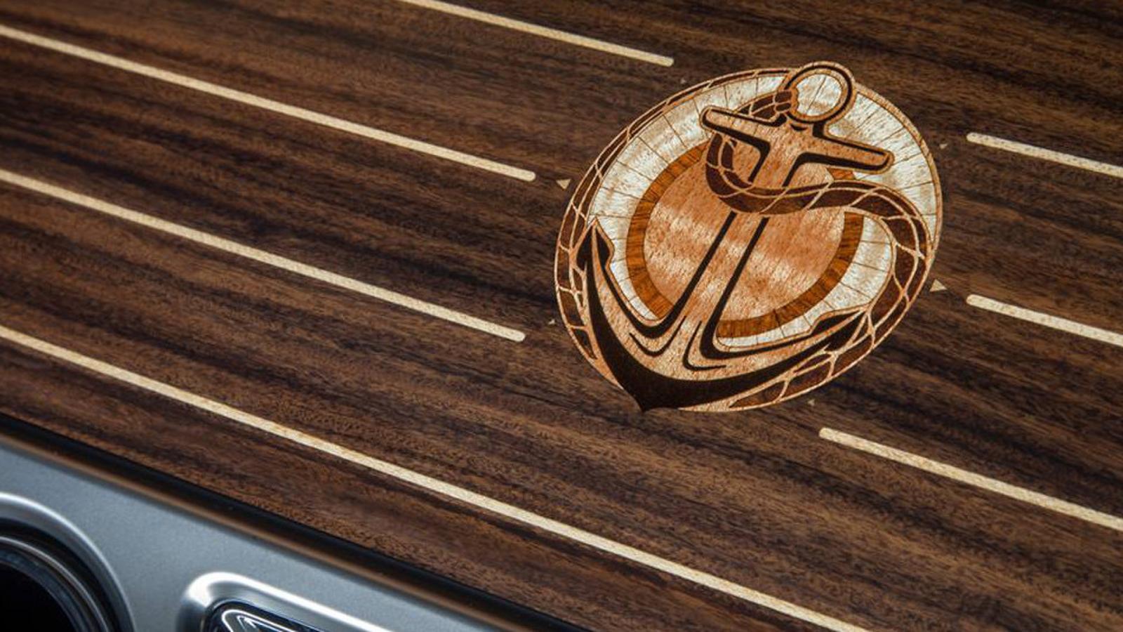 The car is inspired by everything nautical, starting from the exterior color – Arabian Blue with an Orchid White roof – to the anchor emblems by the door handles and above the center console. Everything speaks about a passion for sailing. Inside the car you’ll find a dashboard made of Santos Palisander combined with Tudor Oak, to take things up another notch.