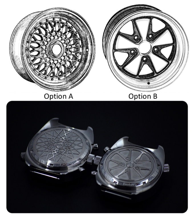 - 2 stamped case back designs