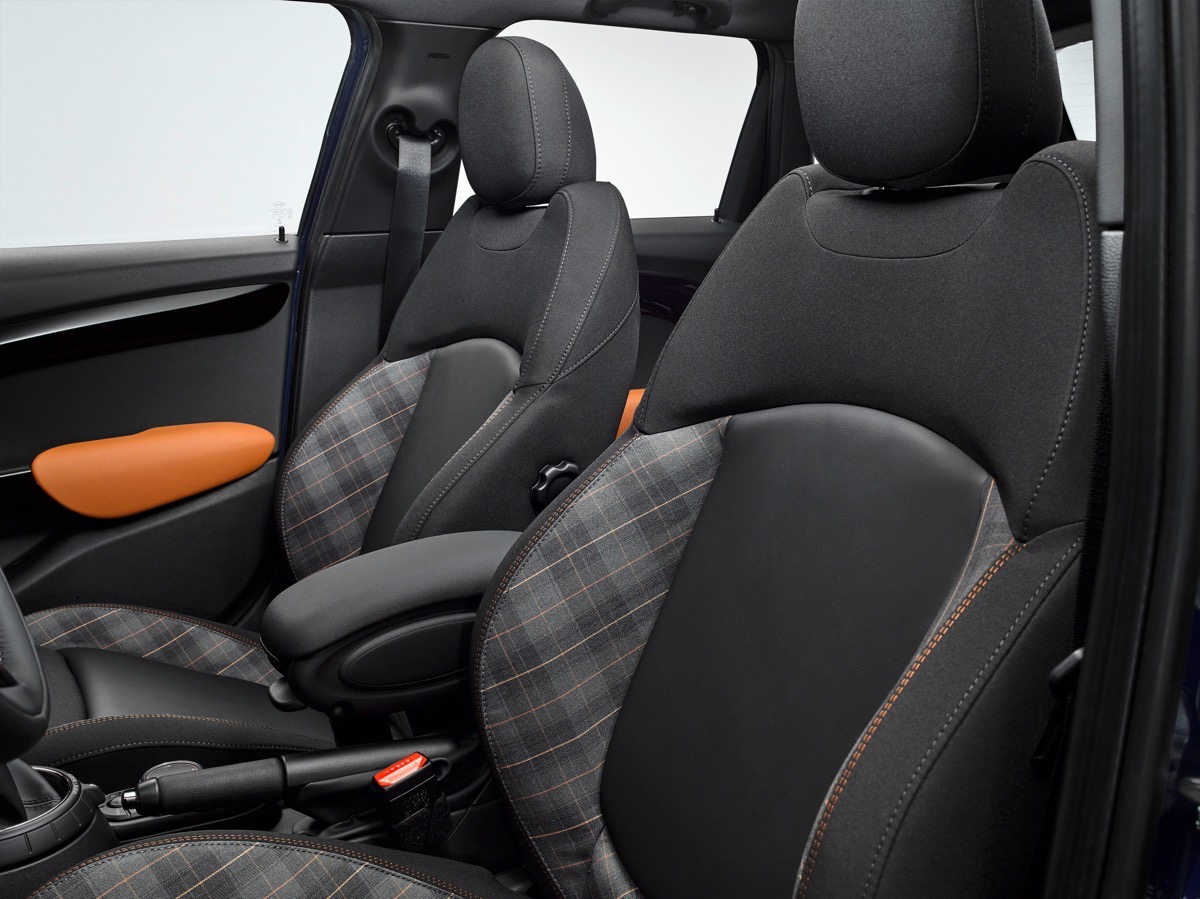While the MINI Seven doesn’t look all that different from its standard counterparts, there are some subtle tweaks and touches to be found that really make it stand out. The MINI Seven will use the MINI Yours color, Lapisluxury Blue, an intense non-metallic blue paint that comes from the MINI Yours customization program. Other optional colors are Pepper White, Midnight Black metallic and British Racing Green metallic. Regardless of color option, though, the MINI Seven will come with mirror housings, bonnet stripes and its roof finished in Melting Silver. The Bonnet Stripes will also feature a new Malt Brown color, a color that will make its way throughout the Seven, trimming the outsides of them. Overall, the contrast Melting Silver bits and the Malt Brown trim give the MINI Seven a classic cool look.