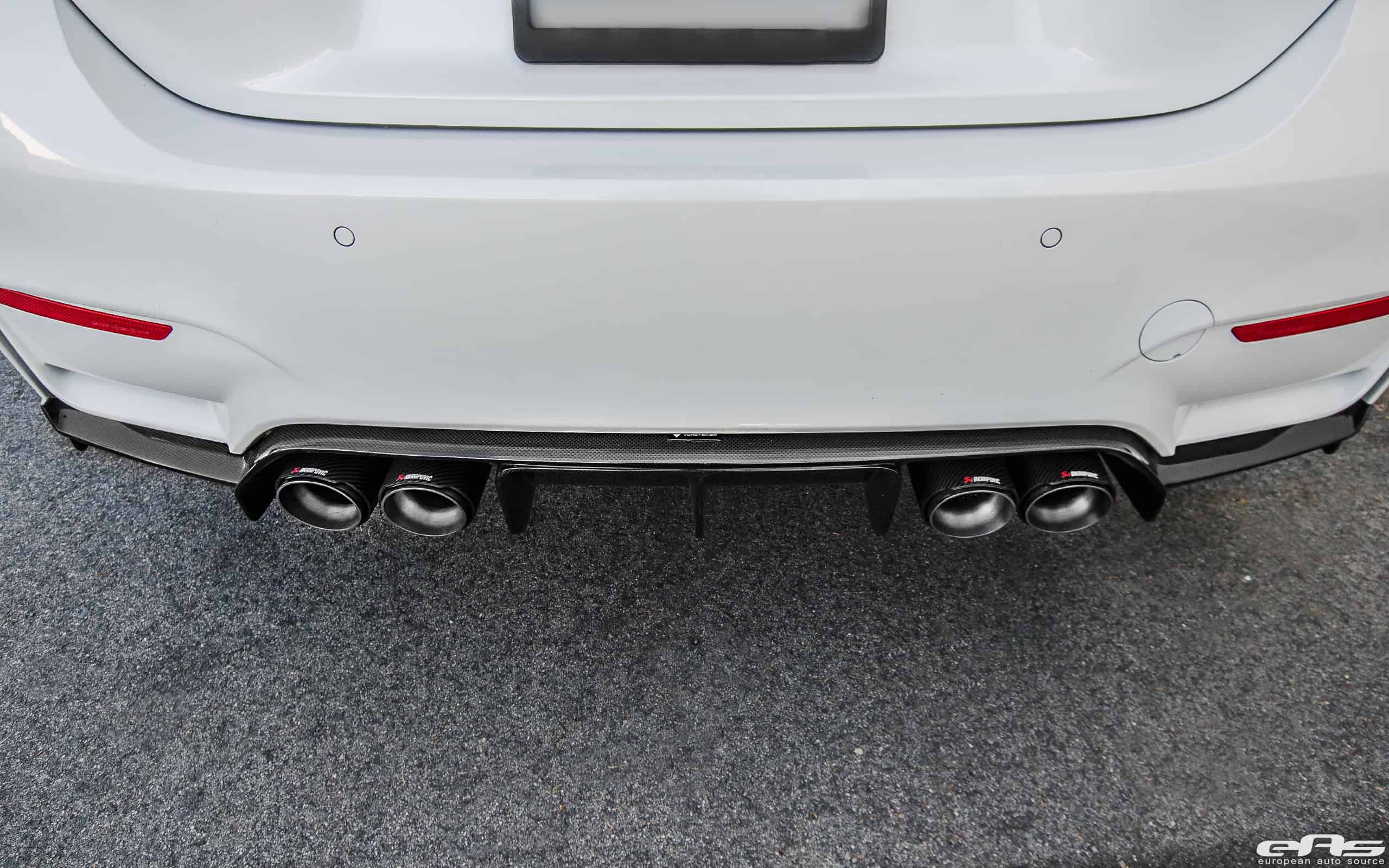 Additionally, the vehicle is now adorned with a set of Vorsteiner carbon fiber parts. Namely, a Vorsteiner GTS Carbon Fiber Front Spoiler and a Vorsteiner GTS Carbon Fiber Rear Diffuser were installed. The addition of carbon fiber makes the vehicle look cleaner and more aggressive overall. Finally, an Akrapovic Evolution Titanium Exhaust System was installed, giving the M4 a much throatier sound note. Full media gallery is available below.