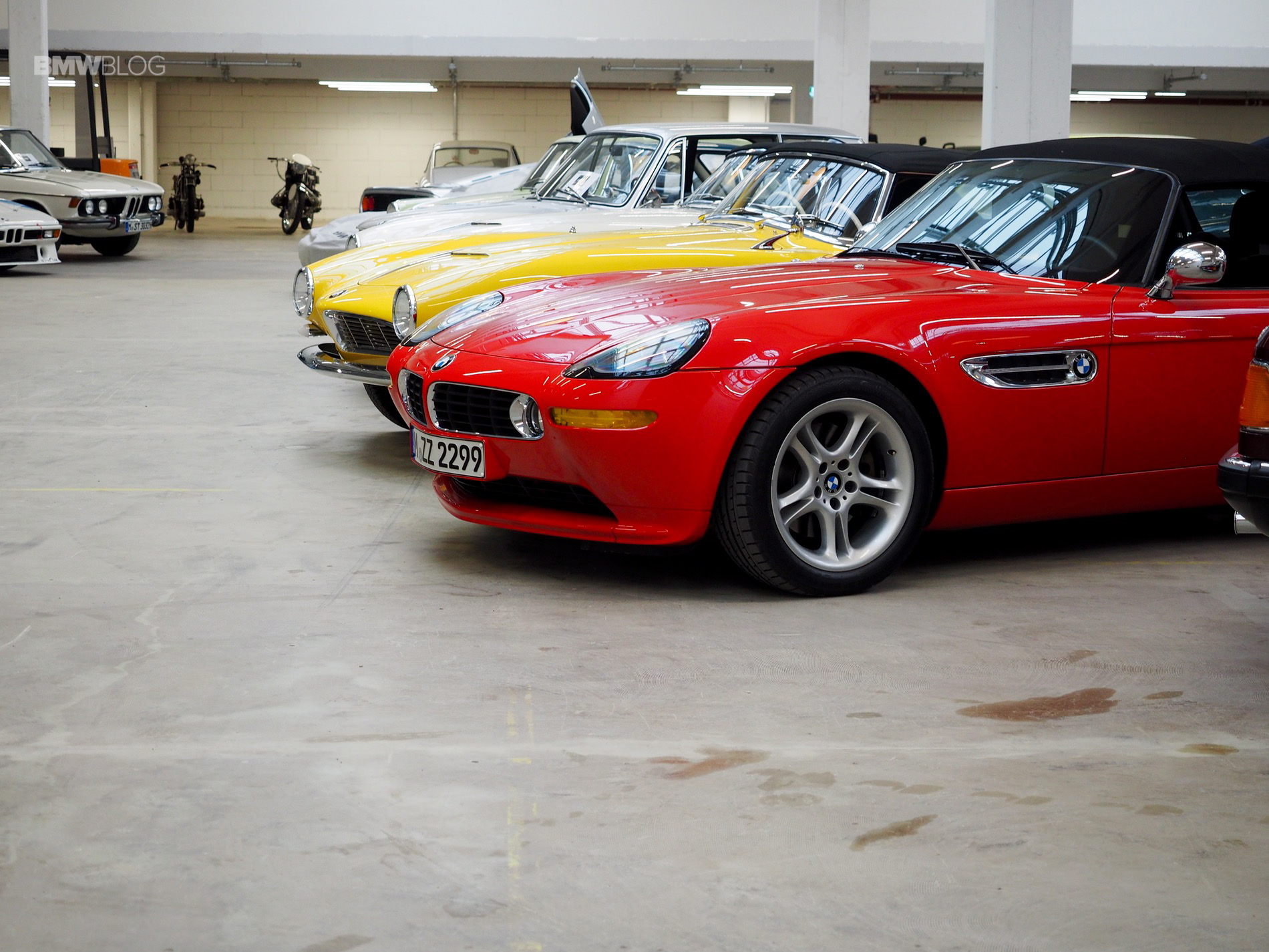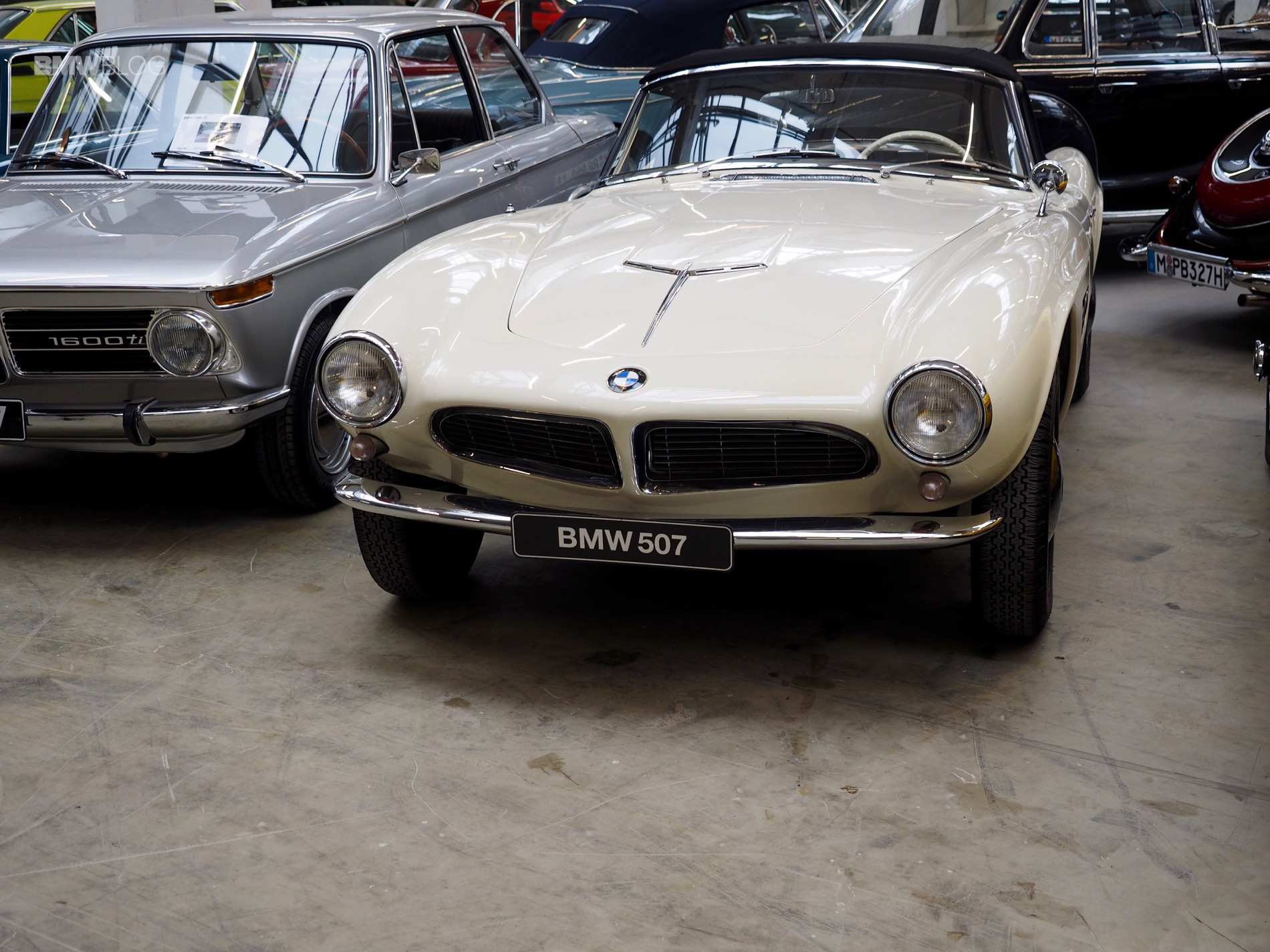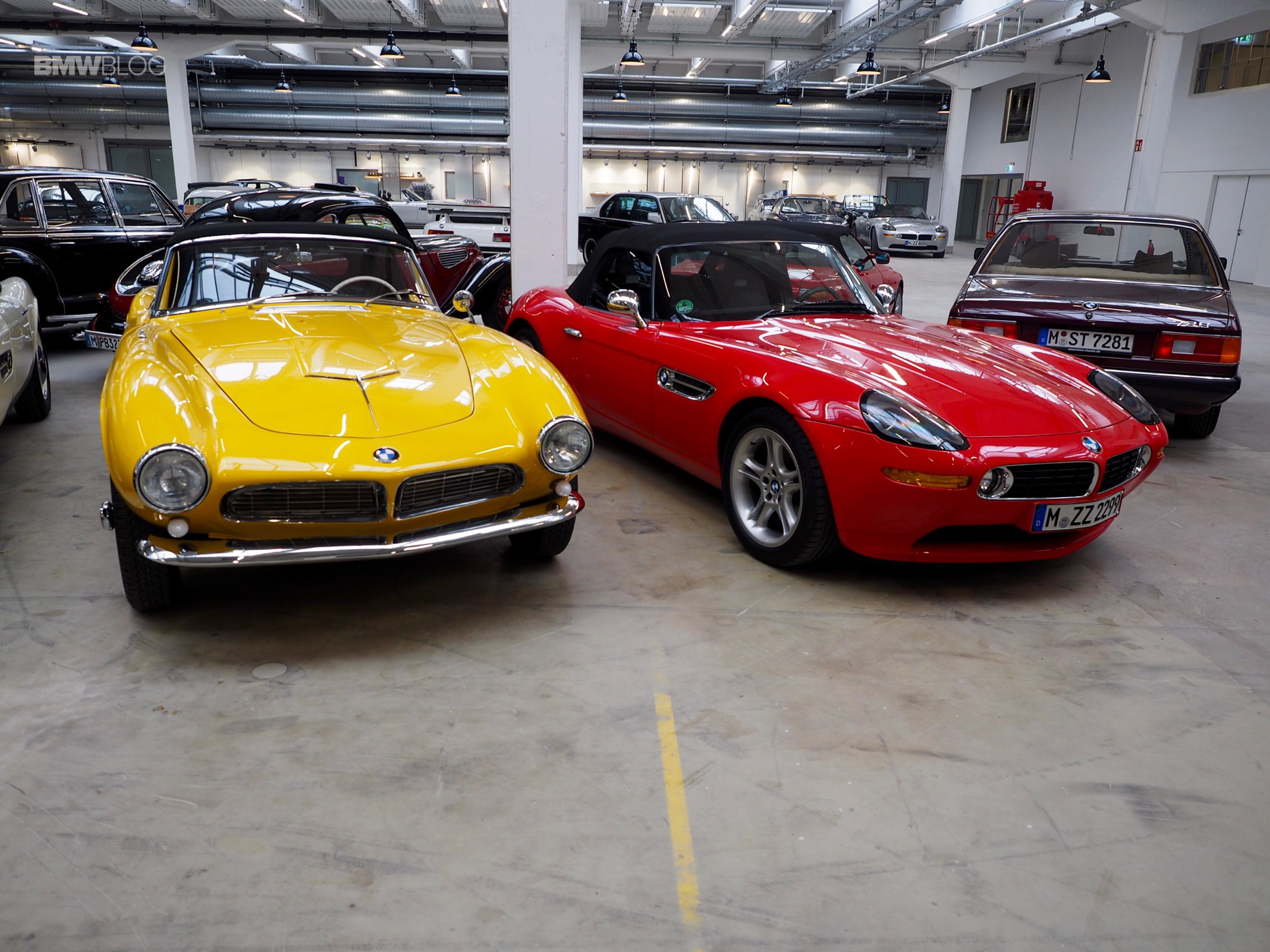 The iconic BMW 507 Roadsters are also present, including the only yellow-painted 507 in the world valued at over $2 million.