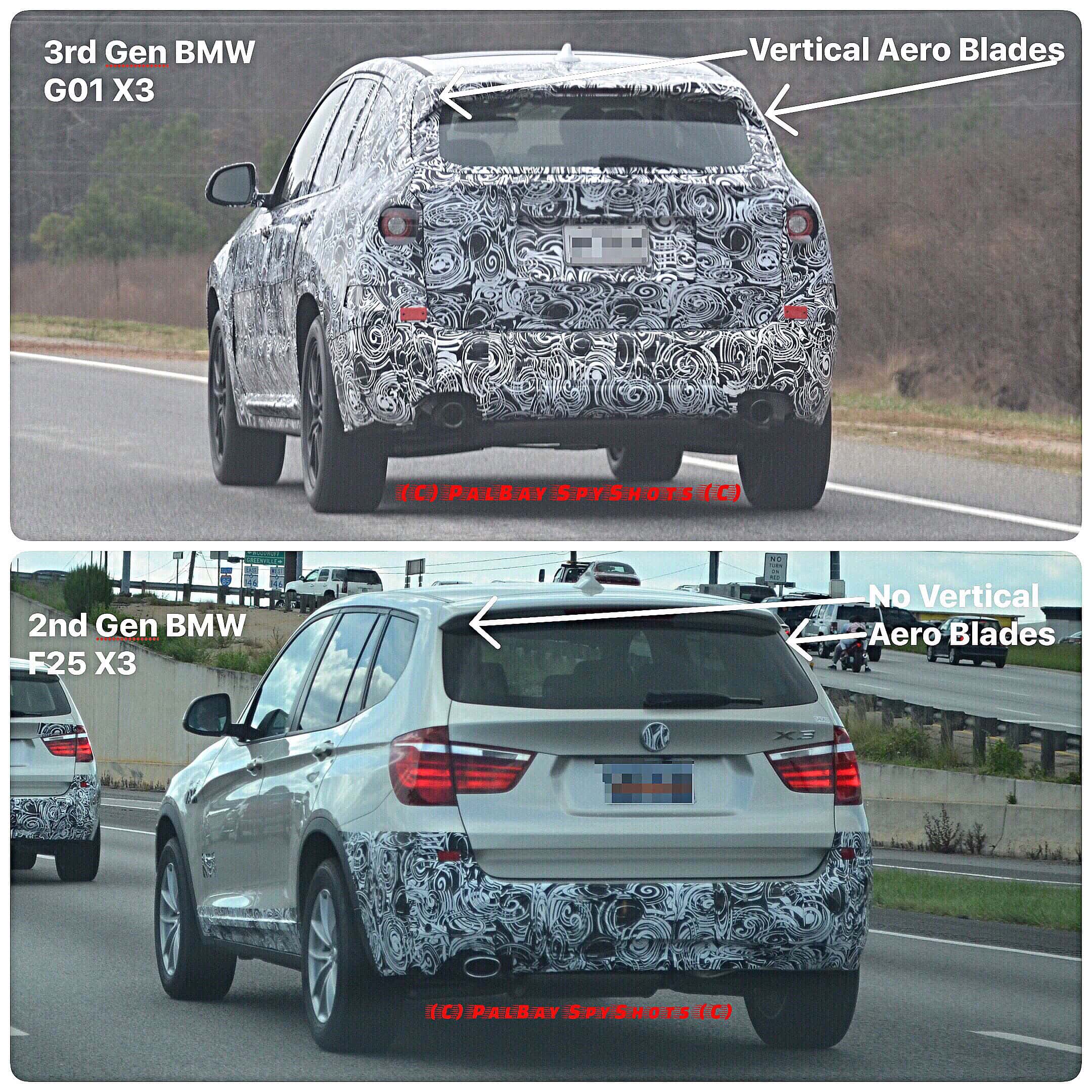 In these pictures, you can clearly see that the current-generation X3 lacks those vertical blades and the upcoming model has them, even if they are a bit smaller than the X5’s. While they are subtle, and a design cue that most likely won’t recognize, they do make a big difference in aerodynamics. Now the air will flow down the side of the car more smoothly, resulting in slightly better efficiency and less noise for rear passengers. It also looks better with them, as the rear wing looks more streamlined into the design as opposed to looking like it was just tacked onto the back of the car, like the current-gen’s does.