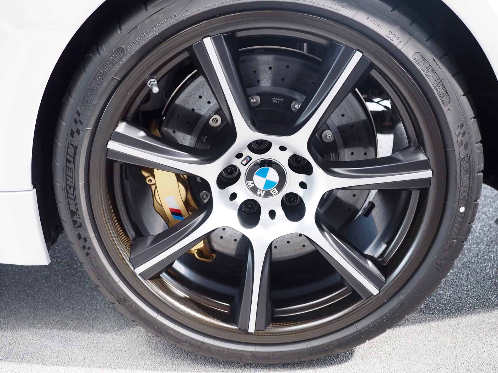The M Carbon Compound Wheels are sized 9.5 J x 19 front and 10.5 J x 20 rear, displaying innovative material characteristics bringing a significant reduction in unsprung and rotating masses and therefore have a positive effect on the car’s acceleration and deceleration, steering responses and vibration levels.
