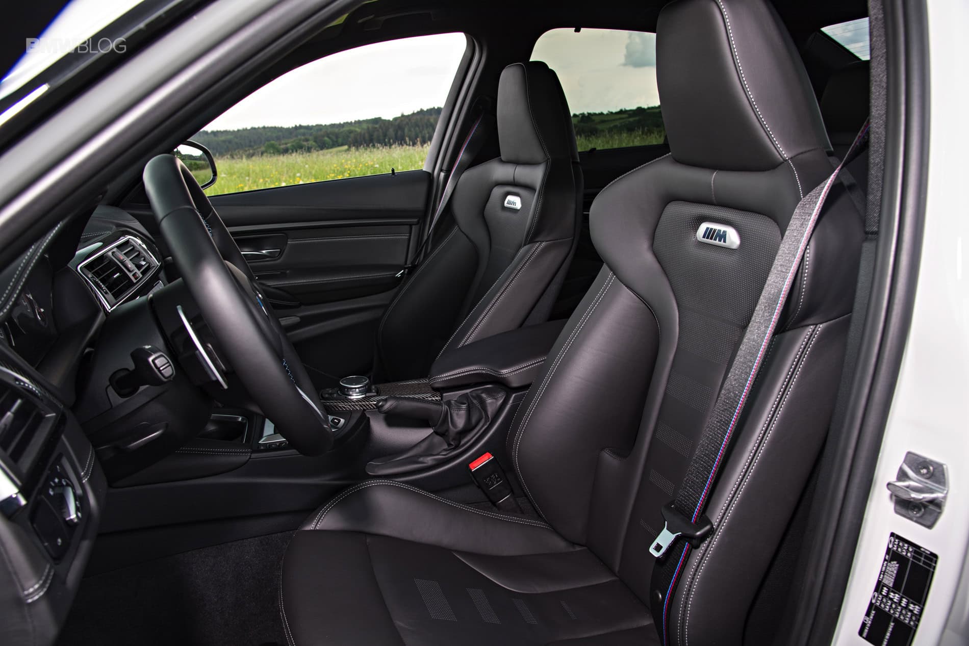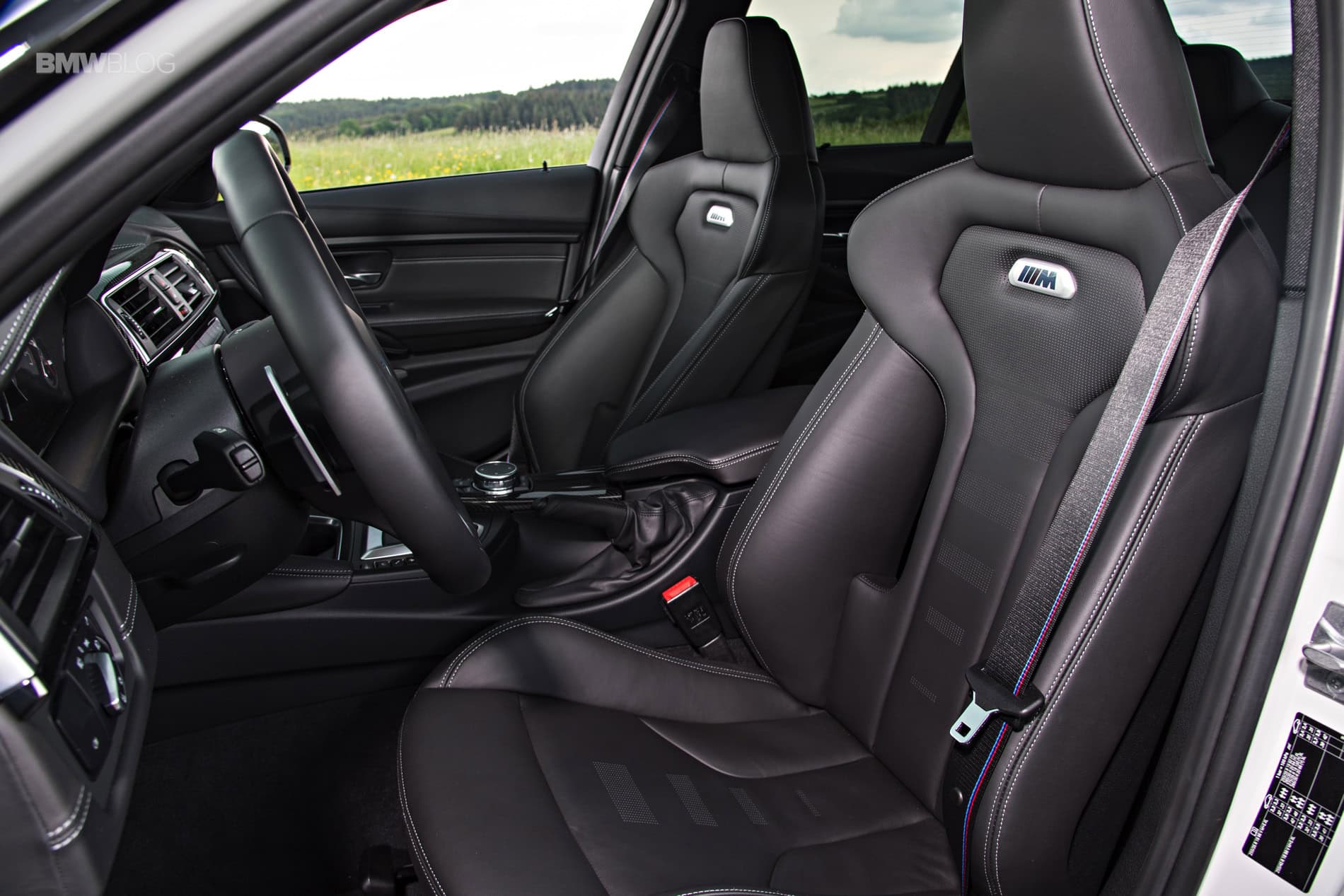 Inside, the new lightweight seats look great and are very supportive. They’re firmer than the standard car’s seats, but will hold better through spirited driving and look very cool. They even work well while wearing a helmet, proving that BMW thought about its owners will take to the track. The M stripes woven into the seatbelt also look great.
