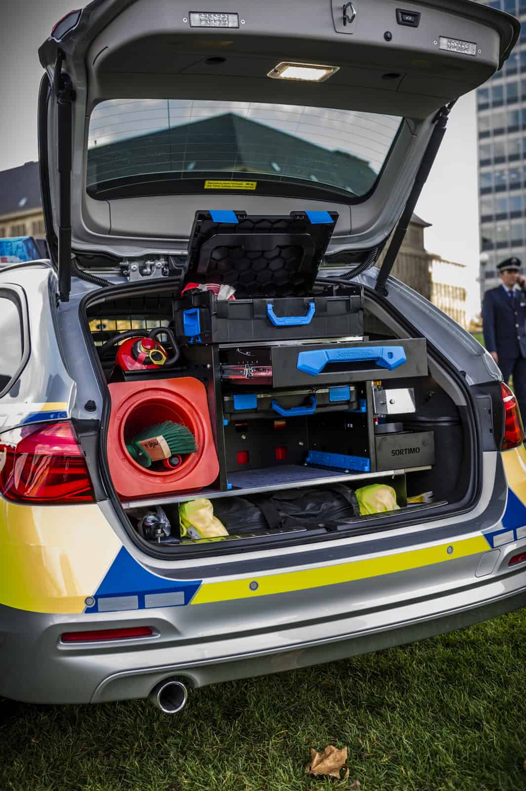 The i3 received all the bells and whistles one could expect on an ER vehicle. It is wrapped in a German Police car livery and has a light bar on the roof as well as LED strobe lights embedded in the front kidney grilles. However, there is no word on what special equipment may hide inside.