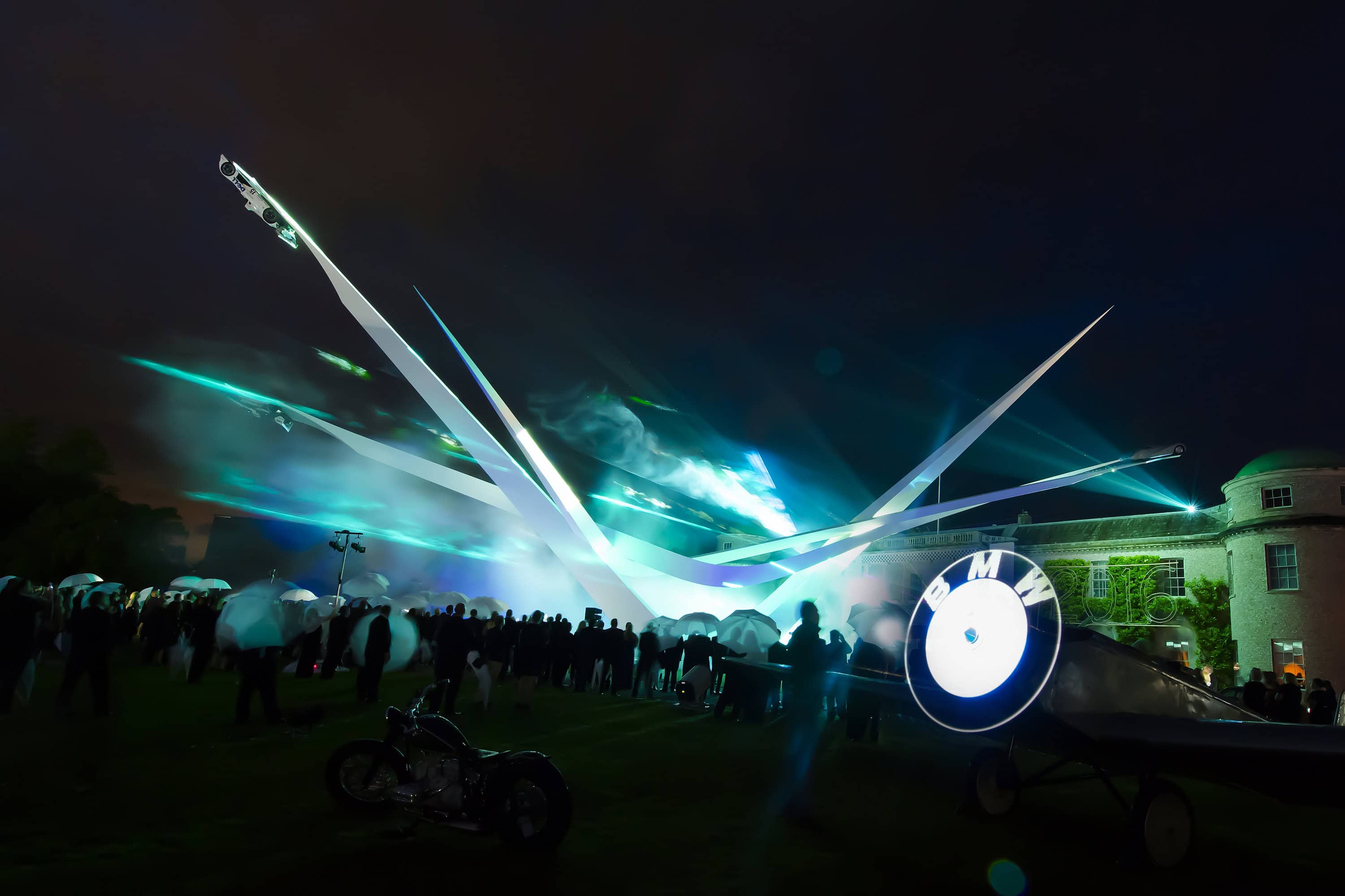 Epitomizing this year’s Festival of Speed theme, ‘Full Throttle – The Endless Pursuit of Power’, the magnificent Central Feature was made of three sweeping steel forms put together in a celebration of speed and dynamism. BMW’s myriad motorsport successes are represented on each arm, with the legendary BMW 328 Mille Miglia Roadster, the Gordon Murray-designed Brabham-BMW BT52, and the Le Mans-winning BMW V12 LMR featured.