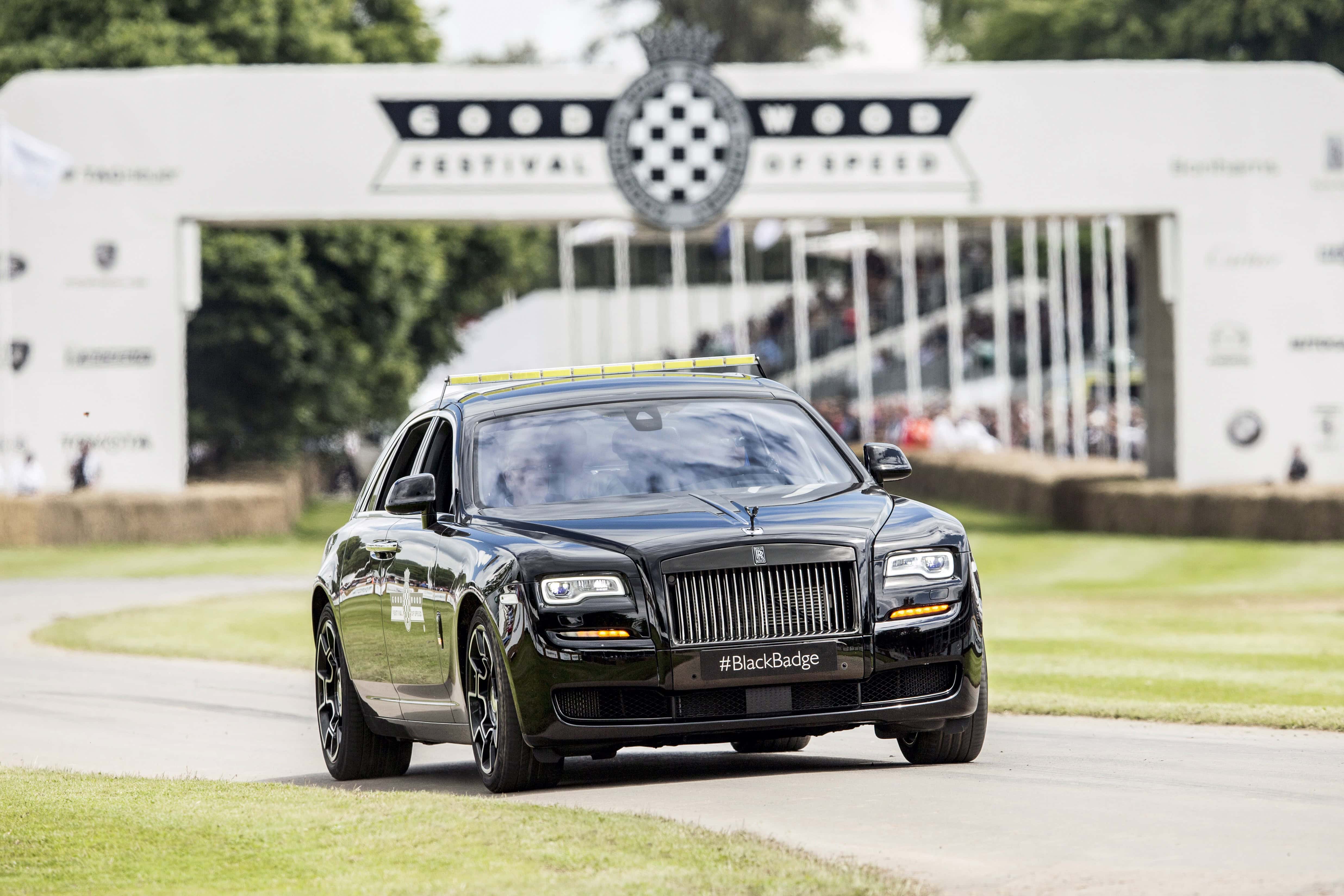 The Course Car this year however was a Rolls-Royce Ghost Black Badge, resplendent with LED race lights and Goodwood decals. The car was seen at speed between each Hillclimb Run throughout the weekend. In addition to Wraith Black Badge and Ghost Black Badge, VIP guests were conveyed in luxury from the Home of Rolls-Royce on the south-eastern corner of the Goodwood Estate in a beautiful fleet of Bespoke Rolls-Royce motor cars.
