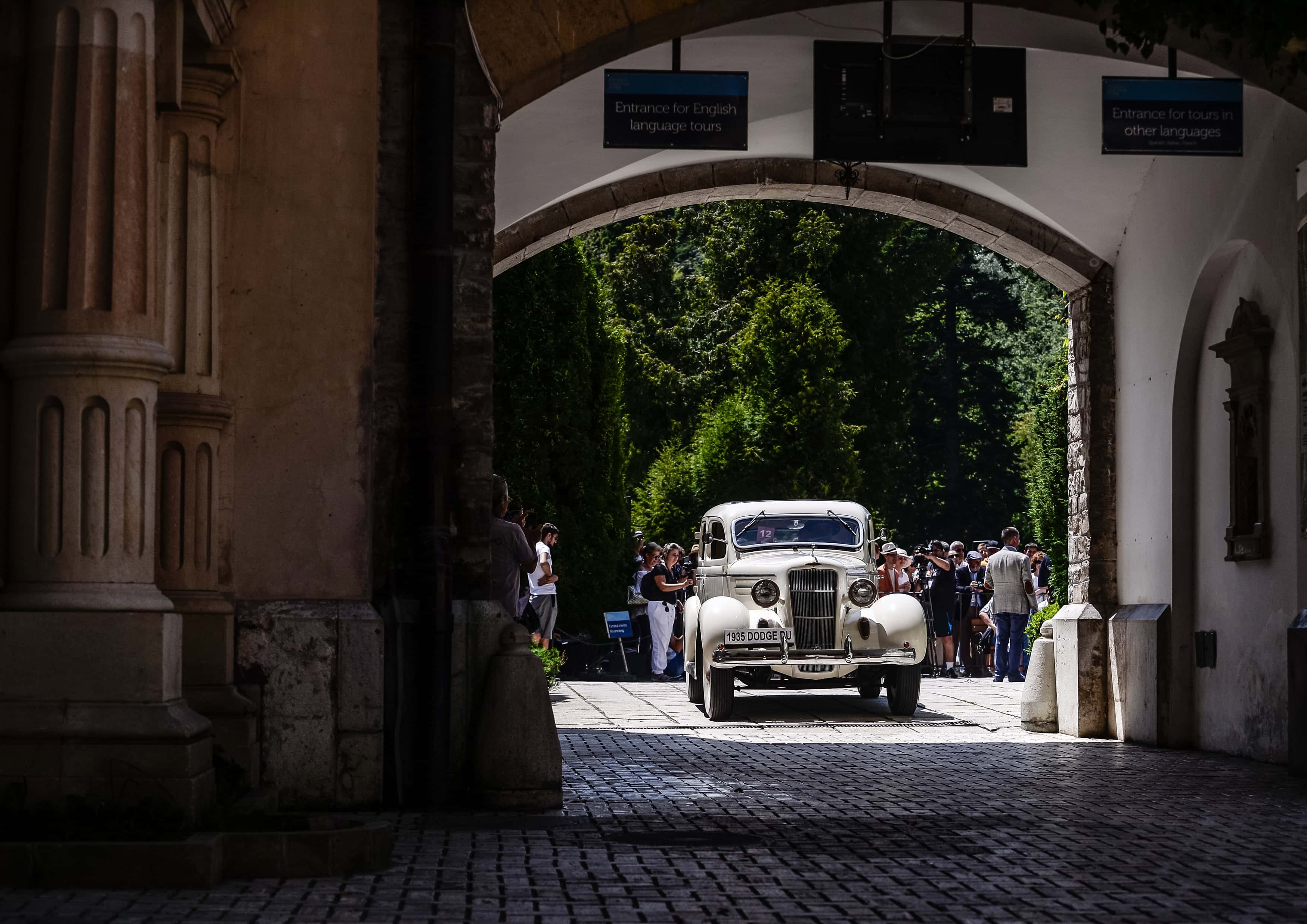 As I got closer and closer to the exposition, the crowd was getting thicker, with murmurs about the cars that I was about to see spurring up my curiosity. No less than 29 classic cars from four countries were waiting for me, most of them spread throughout the Castle’s grounds offering visitors the chance to admire both the automobiles and the impressive architecture of the building.
