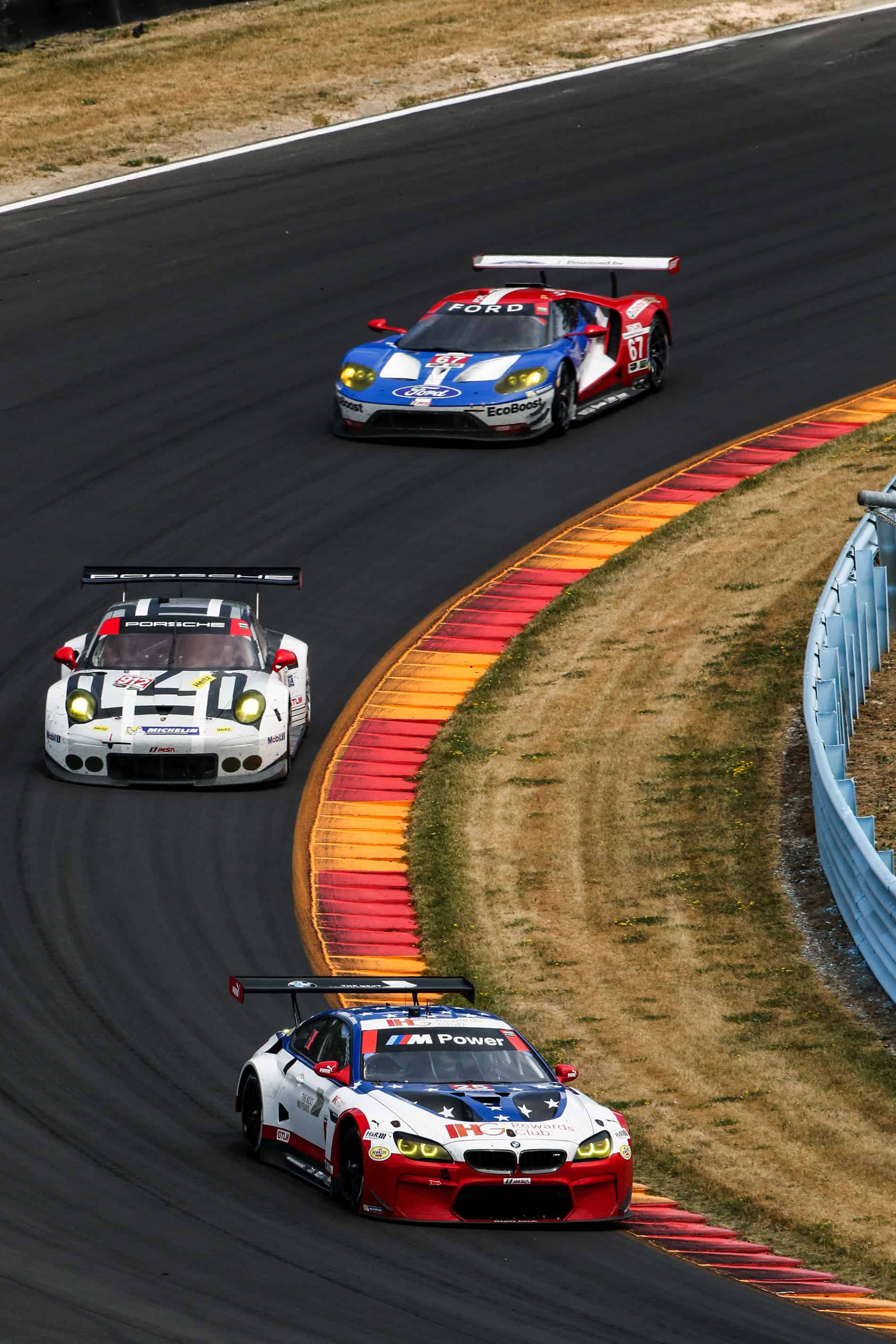 With 30 minutes to go the fifth caution period occurred to set the stage for the final act of the race. The green flag waved seven minutes later with the top-six GTLM cars nose-to-tail. One last yellow flag soon flew for contact debris in turn nine and the field was slowed. Less than fifteen minutes remained when the green flag was waved for the final time. Auberlen was passed for position on the penultimate lap, but held on for the second podium finish for BMW Team RLL this season. The No. 100 M6 of Edwards and Luhr crossed the checkered flag in eighth.