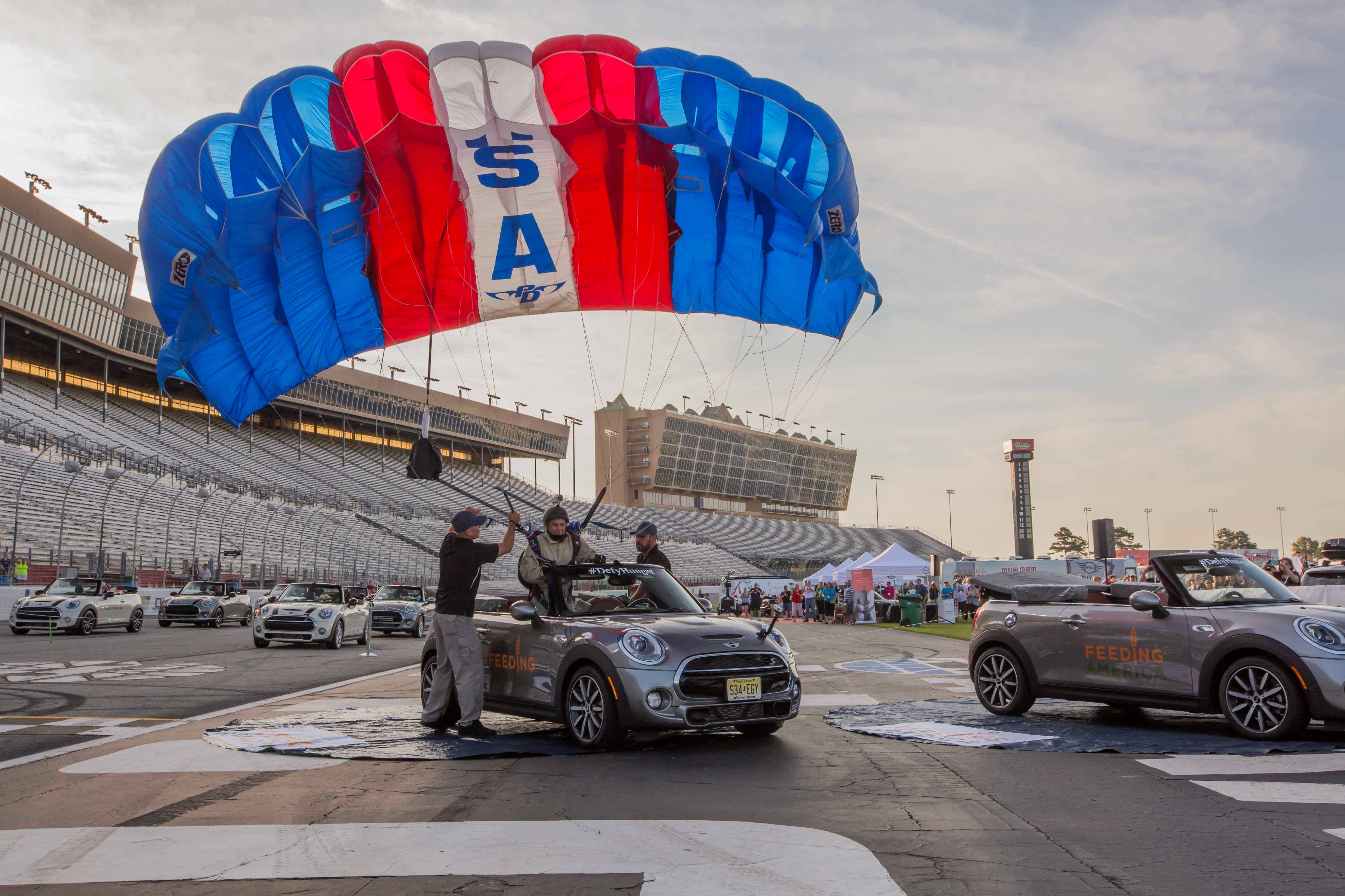 The whole shebang started with parachutists diving down from planes at 3,000-feet into MINI Convertibles filled with food, asking everyone to jump in and help out. From Atlanta, the convoy drove up to Charlotte, NC, from where the adventure will continue towards the final city, Palm Springs, CA where all the participants will stop on July 23rd.