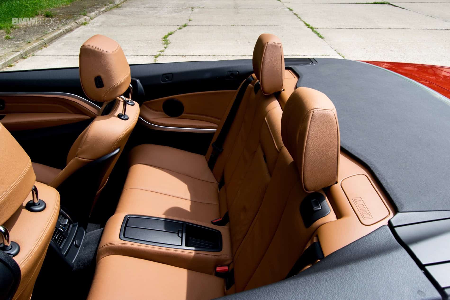 Inside the cabin you’re treated with the usual BMW design and materials. The fit and finish are of the premium assortment while the materials aren’t exactly on par with the 6 Series, but then again, neither are the prices for the two. The 4 Series is considerably smaller in exterior size than its bigger brother and yet, inside the cabin, we had the feeling that there was more room for passengers. Some of the space must’ve been saved by the narrower seats but even so, we were impressed with the fact that four adults can comfortably share the cabin. In retrospect, maybe the “comfortable” part isn’t exactly accurate, as the backs of the rear seats are a bit too upright and too harsh on the back, missing some indispensable padding. I guess that’s the price to pay if you want your roof to fit in the trunk.