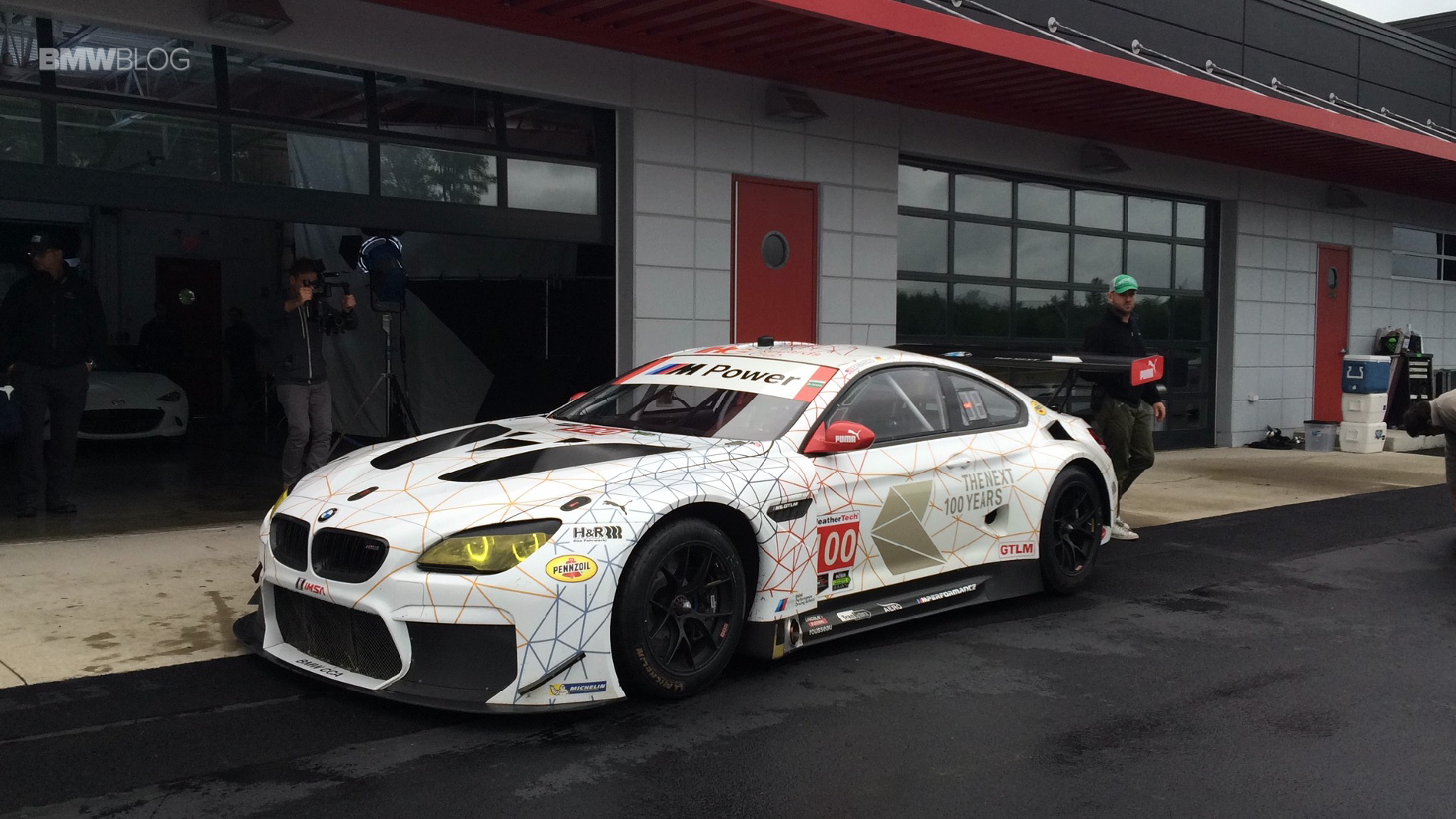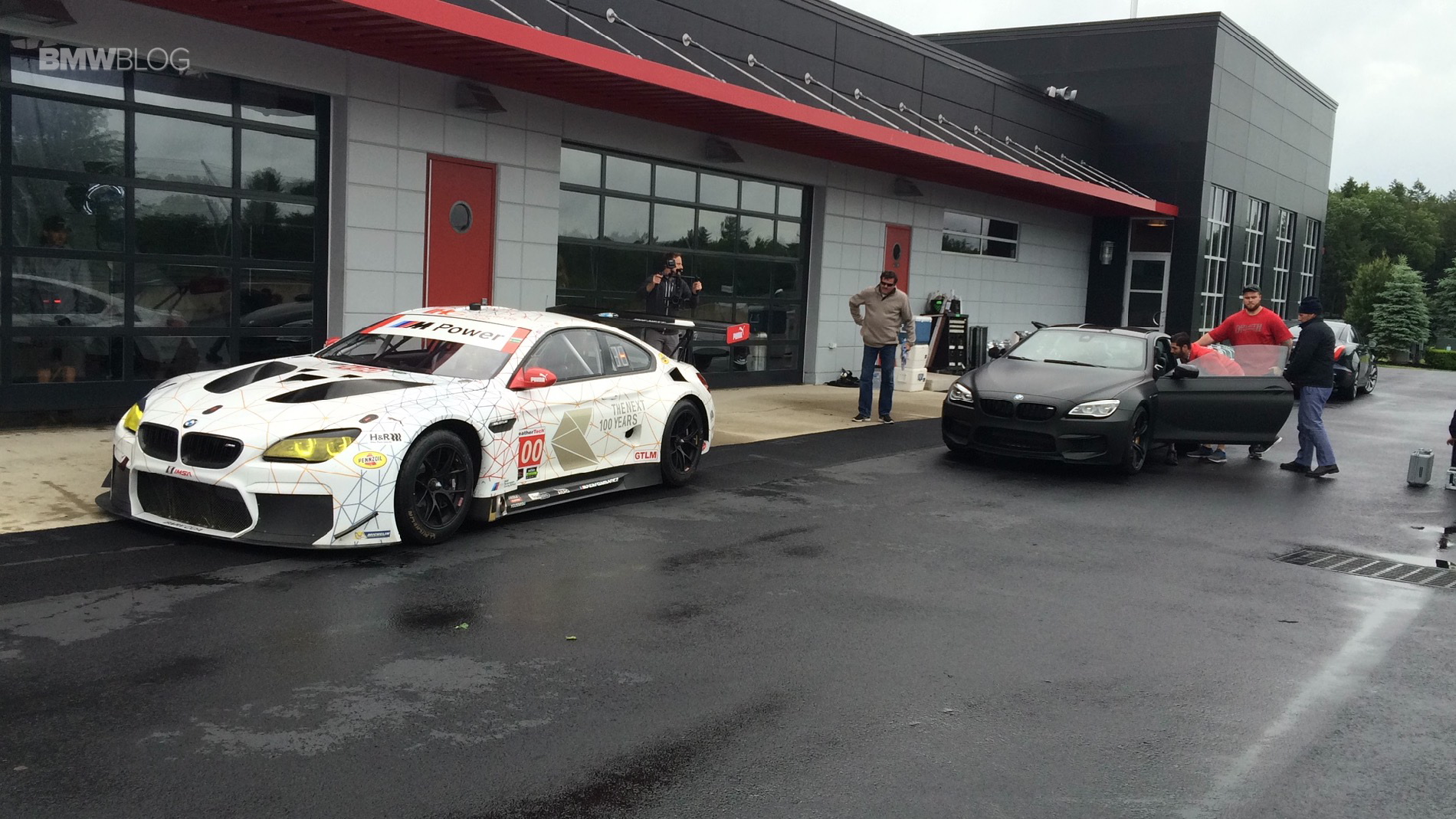 First, Mullins and Edwards watch their cars get prepped with cameras and high-tech remote control gear to allow them to drive the cars remotely. Mullins is “driving” the black BMW M6 road car while Edwards uses the very same BMW M6 GTLM he races in real life. So Edwards might have the advantage in this race, being he’s driving his car and it just so happens to be a proper race car.