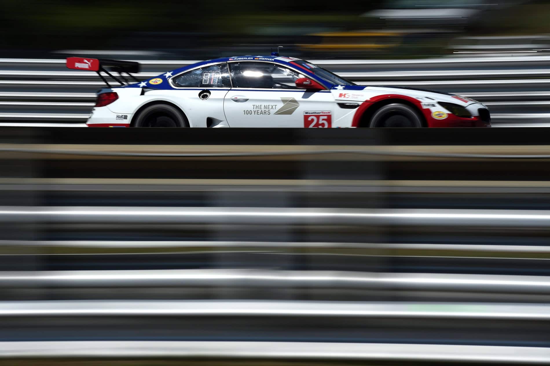 The IMSA WeatherTech SportsCar Championship Northeast Grand Prix turned into a demolition derby for BMW Team RLL as both BMW M6 GTLM racing cars ended the day on the wrecker. Both cars were pushed off the track by the same competitor’s car in Lime Rock Park’s downhill turn in different incidents, ending up in the tire wall and out of the race. The No. 25 M6, driven by Dirk Werner in second place at the time, was on the receiving end of a large impact. Luckily, Werner was unhurt. The race was won by the No. 4 Corvette C7.