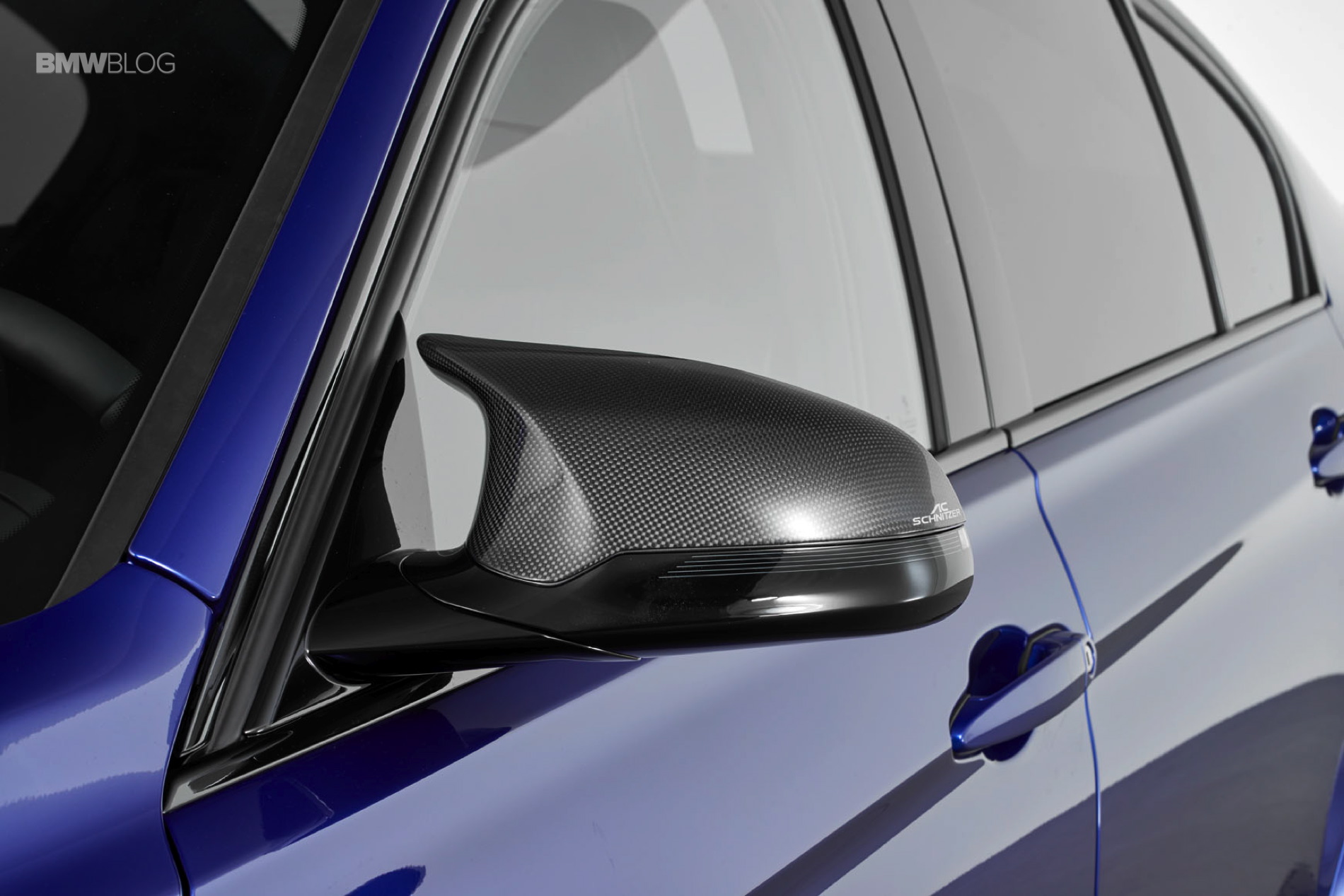 The final stage of the AC Schnitzer front aerodynamic conversion for the M3 and M4 is achieved with the carbon front side wings. These are fitted to the front skirt in sets of two on the right and two on the left (4 per set). The arrangement enhances the air flow along the vehicle side, further improving downforce on the front axle. The components of the aerodynamic package for the front of the BMW M3 and M4 are available individually or as a complete kit.