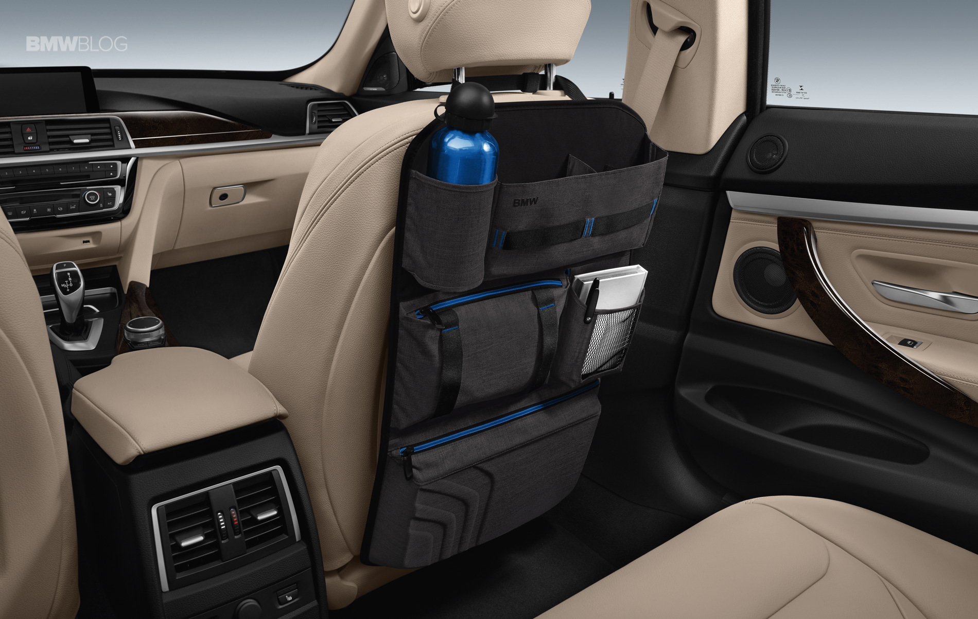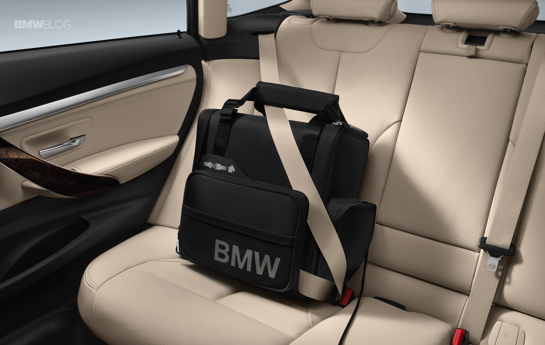 Inside the car, multifaceted storage space is provided by exclusive BMW transport and storage bags, which excel through simple and secure attachment, high-quality workmanship and maximum functionality. For example, the BMW backrest bag, which can be hung around the front seat headrests and secured to the bottom of each front seat, offers numerous lockable storage compartments and additional attachment options such as for a tissue box or bottles that can be conveniently stowed in the integrated bottle holder. The high-quality backrest bag can be folded up into a practical carry case for use outside the vehicle. The BMW storage bag Fond is made from a material combination of genuine leather. Firmly secured using the middle rear seat safety belt, it features – in addition to ample space for small items such as children’s toys – a removable vanity bag and two integrated cup holders. Thanks to two handles and an integrated shoulder belt, the BMW storage bag Fond can also be comfortably transported outside of the car.