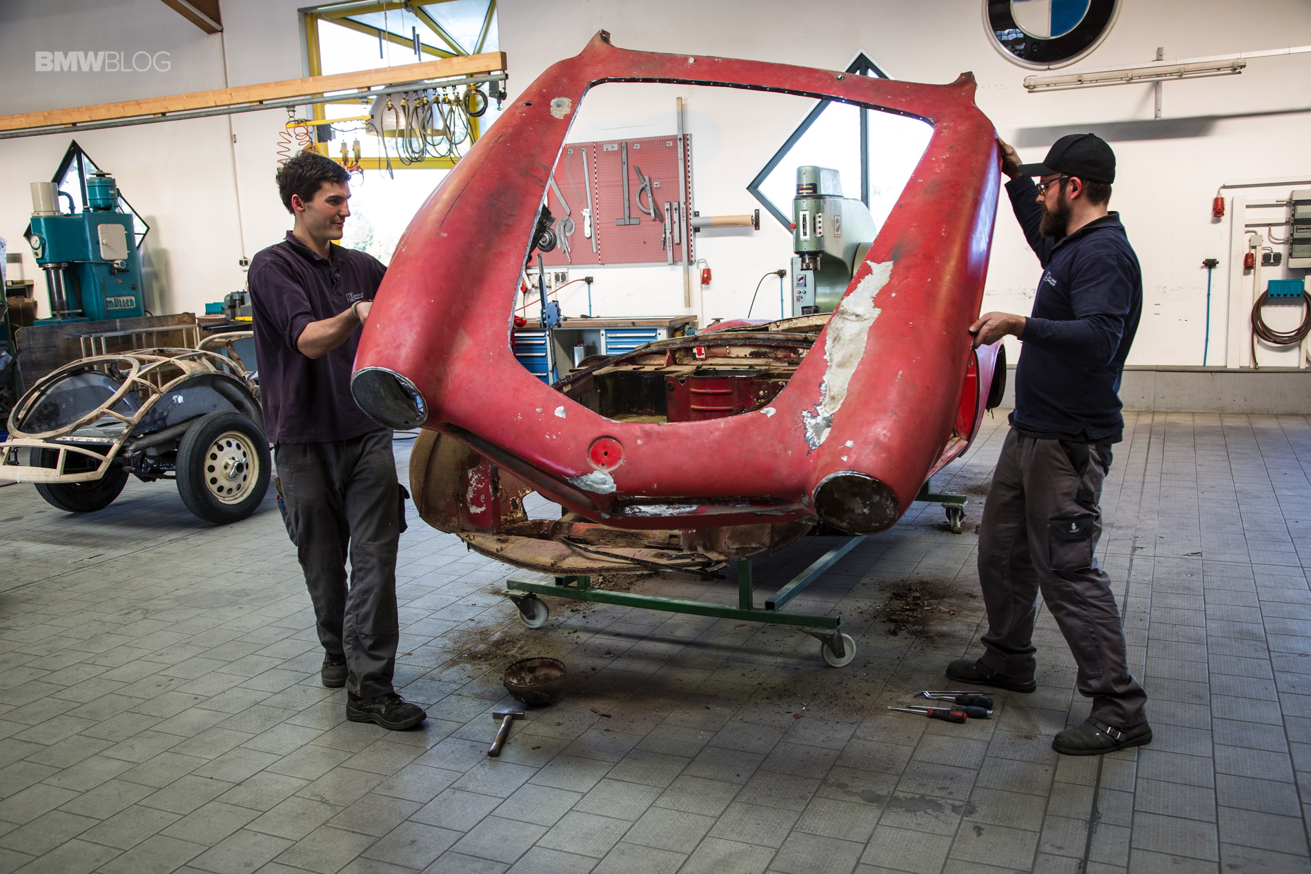 As was usual for projects of this nature, phase one was primarily destructive in nature. The vehicle was completely dismantled, a process which in this special case took an entire week, rather than the two days that had been originally planned. Initially, the aluminum body was separated from the floor assembly made of sheet steel. This was the only way of retaining as much of the original material as possible. The paint was then removed from the floor assembly in an acid bath and from the body in an alkaline bath. The engine had already been removed and the remnants of the interior that remained had been set aside.