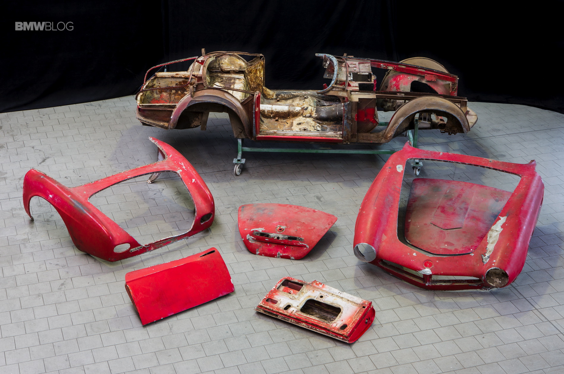 The time had come in the spring of 2014. The BMW 507 was shipped to Germany in a container, together with the spare parts collected by Castor. The first stop in Munich was the BMW Museum where the roadster was presented to an admiring audience in the special exhibition “Elvis’ BMW 507 – lost and found”. Work then began on restoration in the workshop of BMW Group Classic.