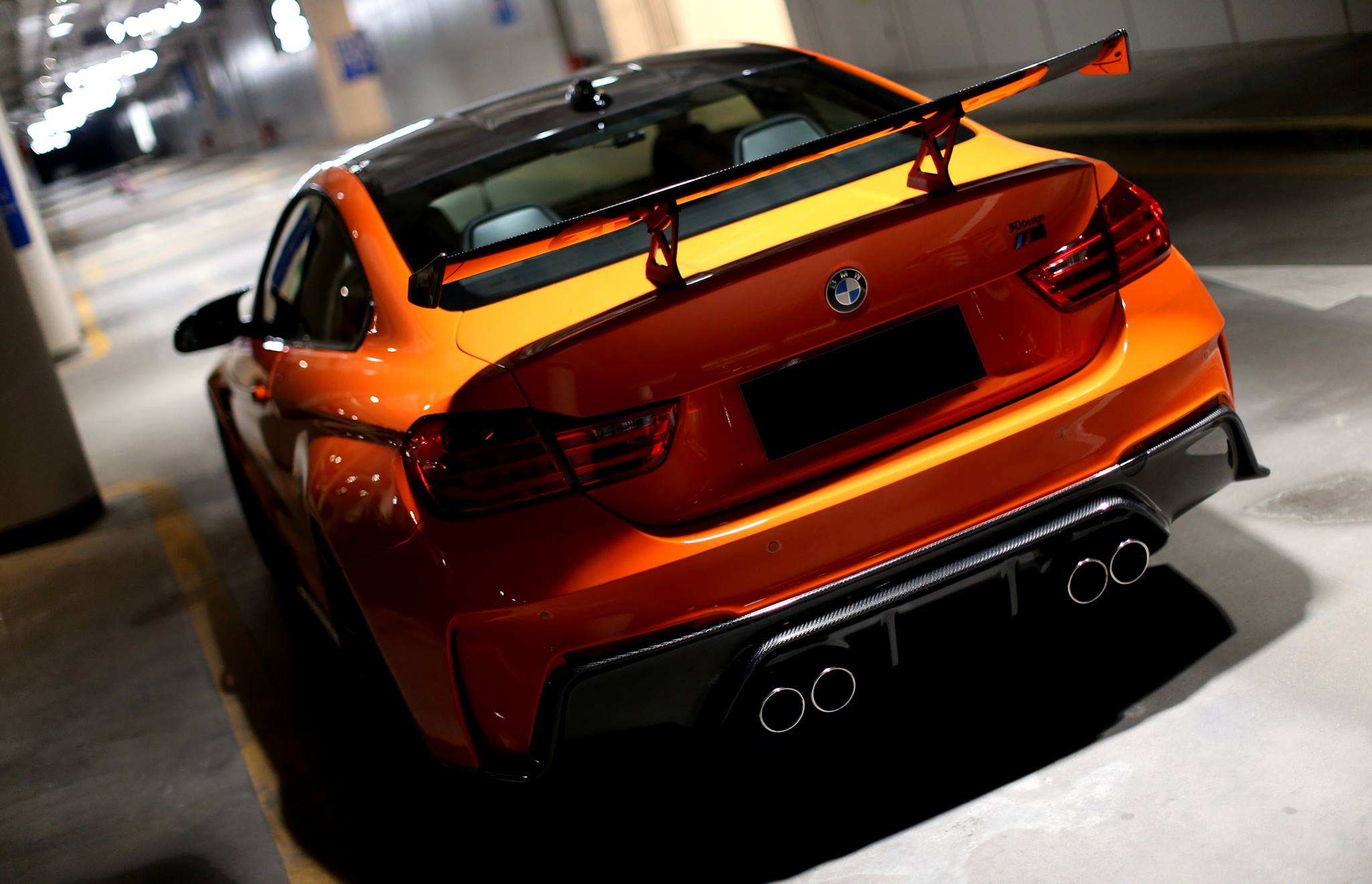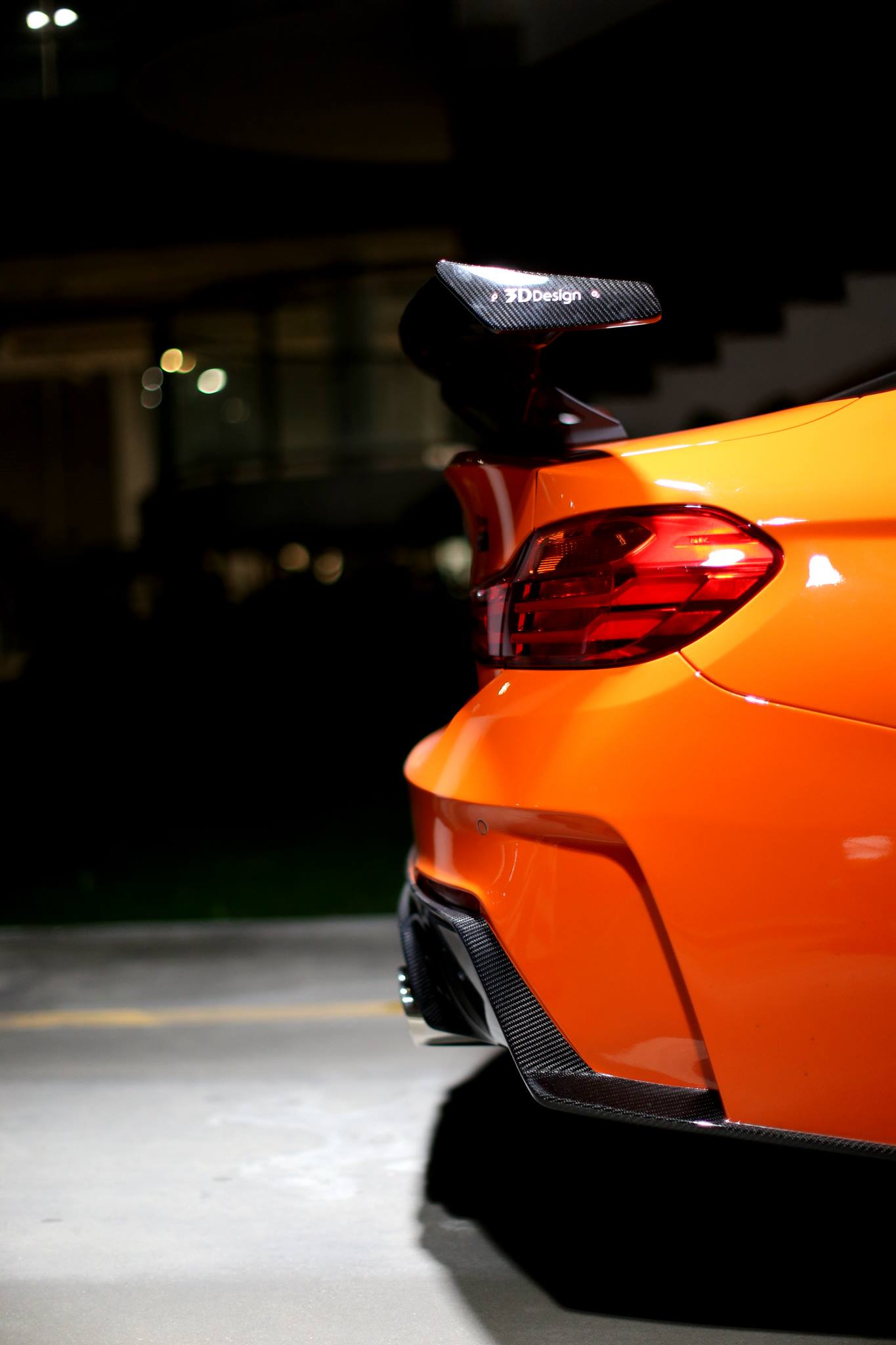Matching side skirts, black kidney grille and black wheels provide dark accents to the Fire Orange, and the rear spoiler lip made of carbon contributes to the overall sporty look.