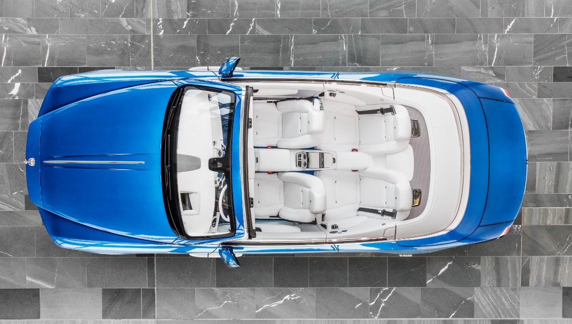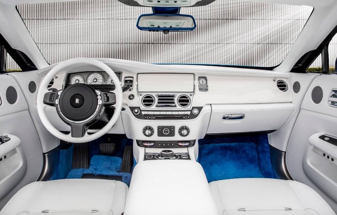 The Arctic White leather surrounds the compartment and adorns Dawn’s rear deck. The white interior is highlighted by the vibrant Fux Blue Bespoke lambswool and carpet creating a visually striking image. This Dawn will join Mr. Fux’ collection of more than 150 custom cars. His Bespoke creations have introduced new levels of color and design to Rolls-Royce Motor Car lovers over the past 15 years.
