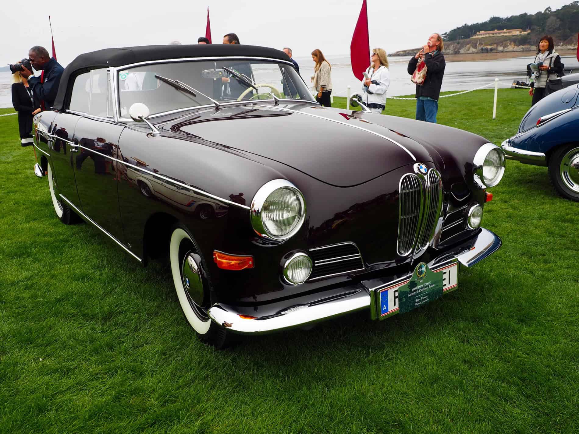 Another beauty on the Pebble Beach lawn was a 1960 BMW 3200 S Cabriolet Sedan. Built on the BMW 502 chassis by the Darmstadt-based coachbuilder Autenrieth, the 3200 S is the only BMW to this date carrying the “cabriolet sedan” badge name. Designed by Albrecht von Goertz as a luxury sports car, the new 503 was considered the successor of the 502 model and came with a choice of two body styles – coupe and convertible.