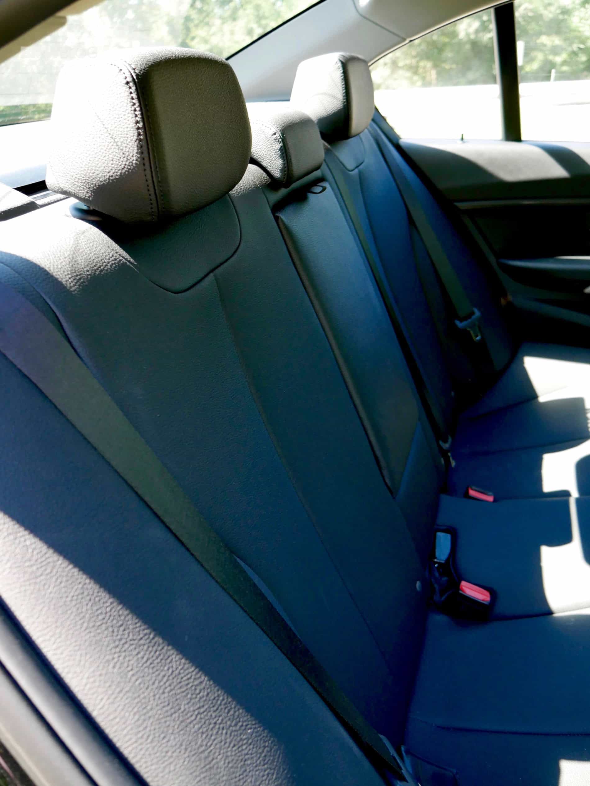 The 320i standard seats are covered in what BMW calls SensaTec, an artificial leather like covering and come with manual adjustments. Power seats are optional. BMW’s SensaTec is a long way from the “naugahyde” fake leather in the 80s era cars I grew up with. You will find an entry level $22K Kia has a back up camera and keyless entry standard, but not on a BMW 320i. Alas, the U.S. Government will fix the back up camera for 2017, when they will require all cars to have them. The 320i does come standard with ABS, airbags and traction control. Just no blind spot detectors, or lane departure warning, back up sensors or back up camera though they can all be optioned for extra coin.