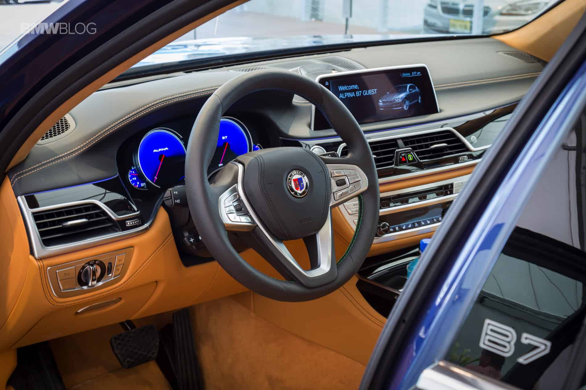 In the cockpit, ALPINA has added some nice touches to the already fantastic 7 Series interior with blue illuminated door sills, plush floor mats with ALPINA inscription, and a production plaque on the center console with your option of Piano lacquer or Myrtle luxury wood.