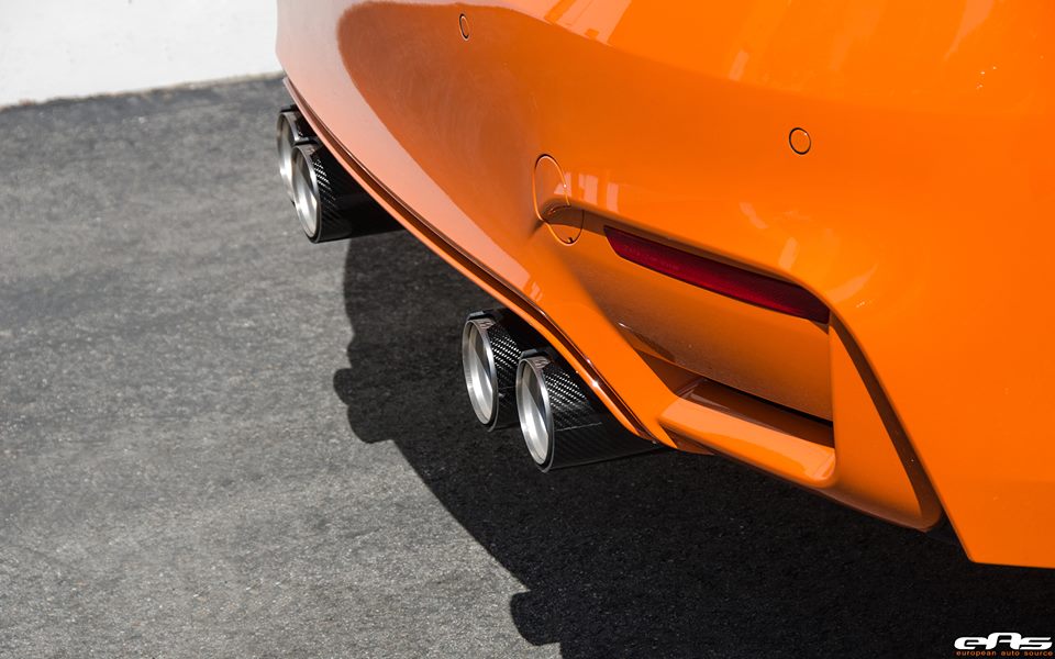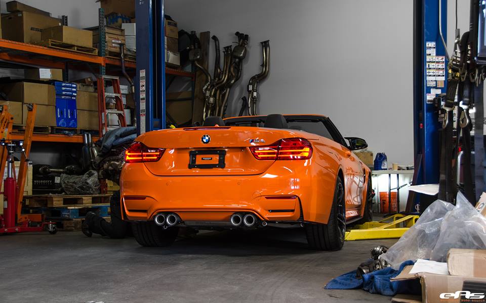The car that came in to the European Auto Source shop was dressed in Fire Orange and received some well-needed upgrades to make sure it both talks the talk and walks the walk when needed. The guys fitted the drop top with a set of Evolution Racewerks catless downpipes, an ESS Tuning S55 stage 1 performance ECU software, an EAS intercooler trim plate (ITP), BMC air filters and an M Performance ZCP trunk badge.