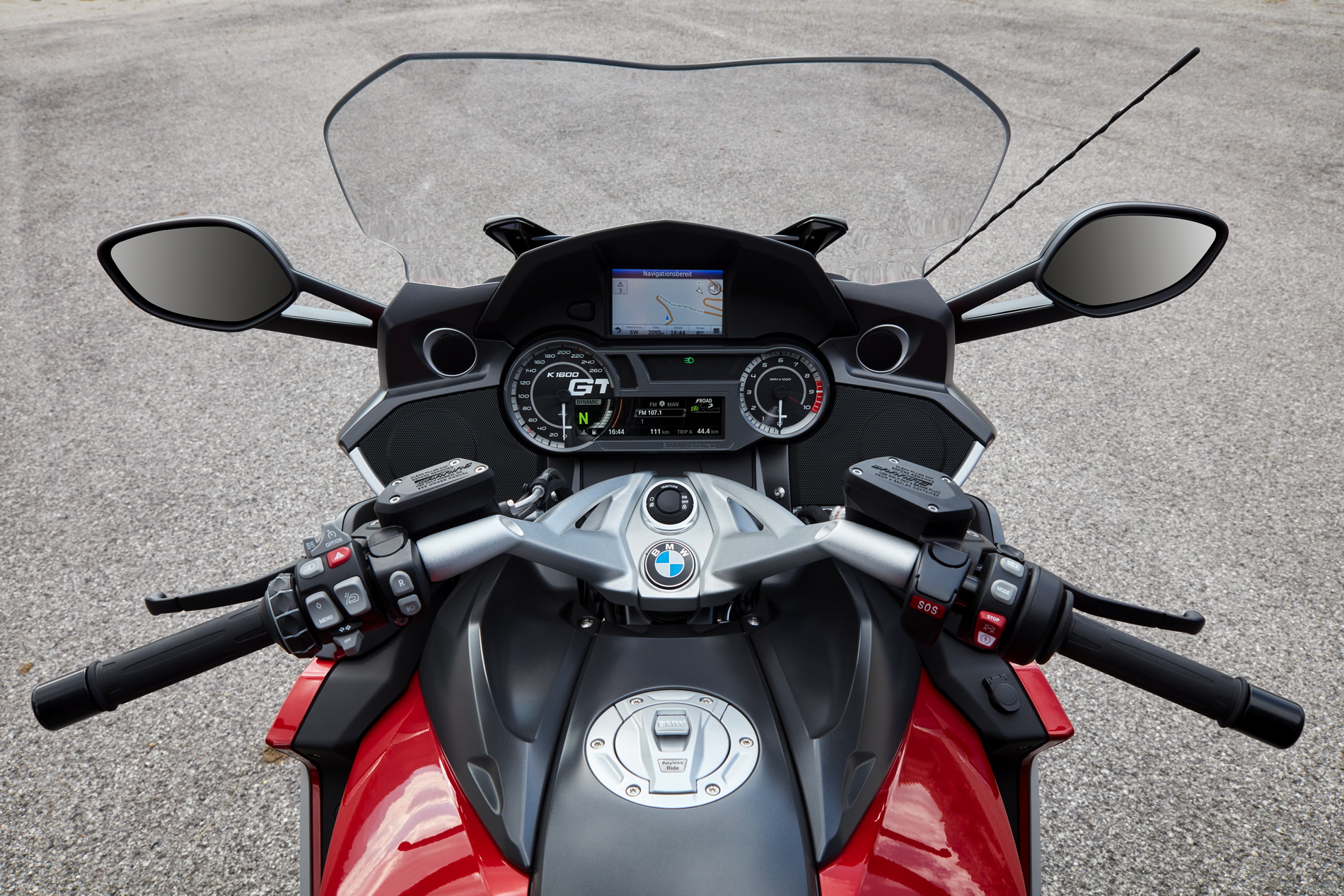 The speedometer and engine speed display in the new K 1600 GT now have newly designed dials. The speedometer now prominently bears the inscription K 1600 GT.