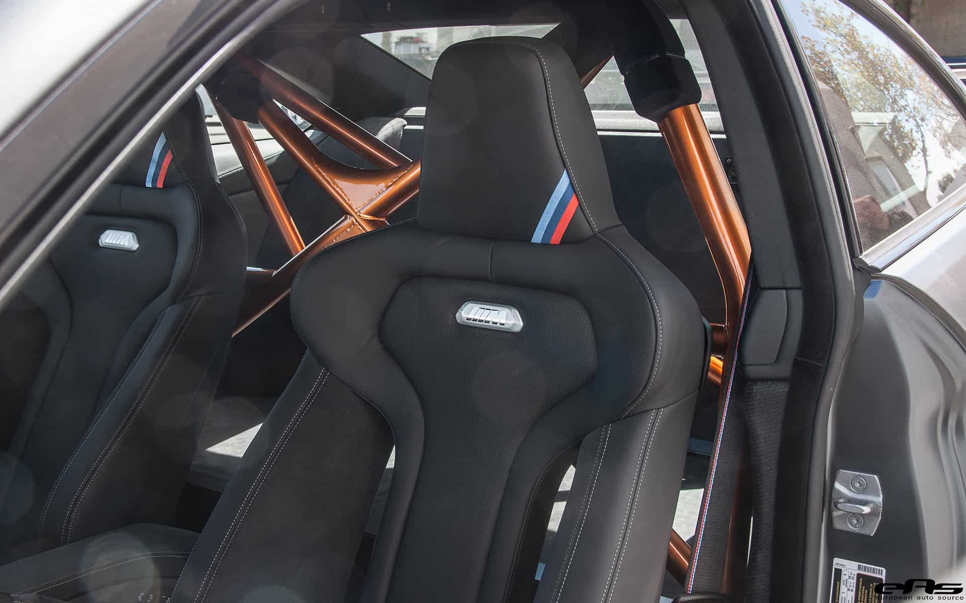 Being a U.S. model, the car came with the newer ZCP (competition) seats as well as ZCP seat belts featuring the stunning M striping. Hard to miss, the Acid Orange roll cage dominates the back seat area. All together the mix of the Frozen Dark Grey Metallic paint and Acid Orange flows together nicely. Something not seen on too many models to date however is the wheels on this car. Optioned with M Carbon Compound Wheels, the race track designed and street approved wheels are the world’s first series-produced wheels with both CFRP and aluminum-composite construction. These wheels are 7kg (15lbs) lighter than the standard lightweight forged aluminum wheels that come standard.