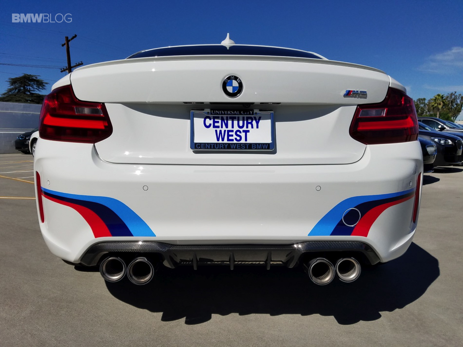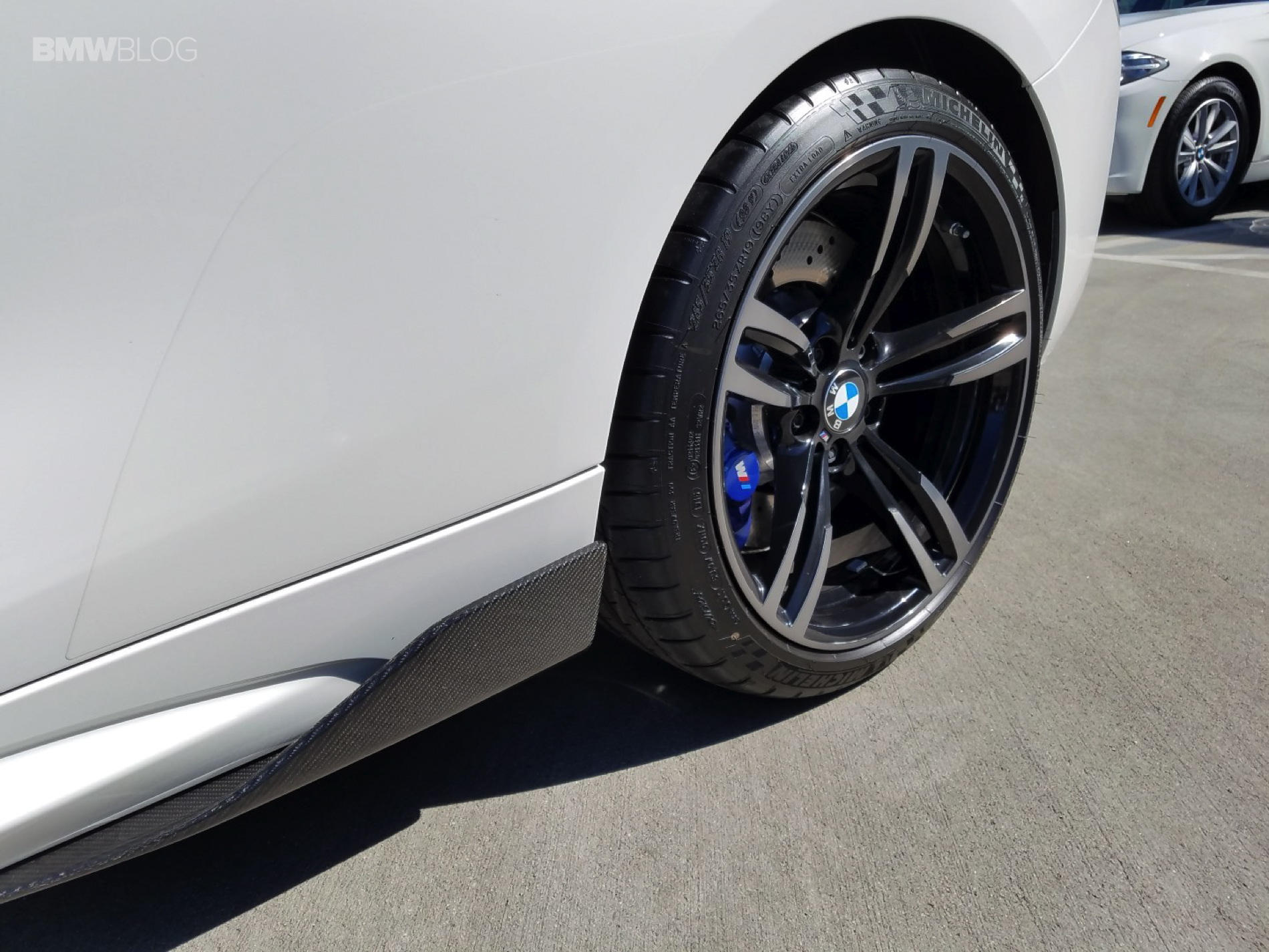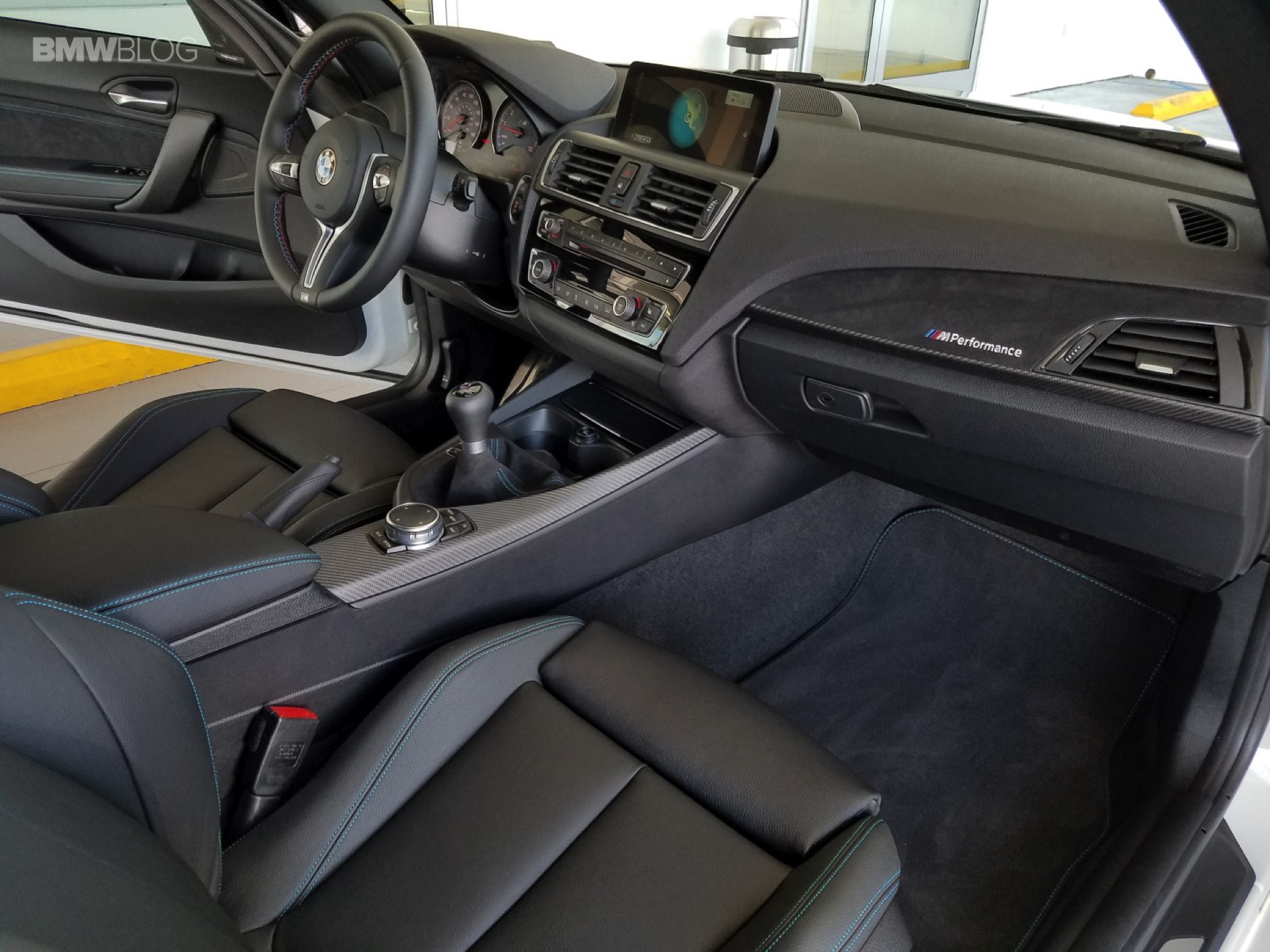 As if it needed it, Marino has dressed this M2 in everything he could from the factory including, but not limited to black kidney grills, carbon fiber front aero kit, carbon fiber mirror caps, stainless pedal set, carbon fiber and alcantara interior trim, M-illuminated door sills, performance analyzer for iOS (Apple), carbon fiber rear diffuser, carbon fiber exhaust tips to go with the M-Performance exhaust, black side-grills, M-led door projectors and BMW Motorsport striping.