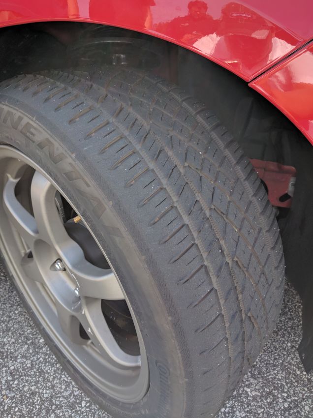Here is the shocker at the end of the session. The Continentals Extreme Contact DWS06 shoulder blocks were heavily cupped (fish scaled) when compared to the Michelin Pilot Sport A/S 3+.