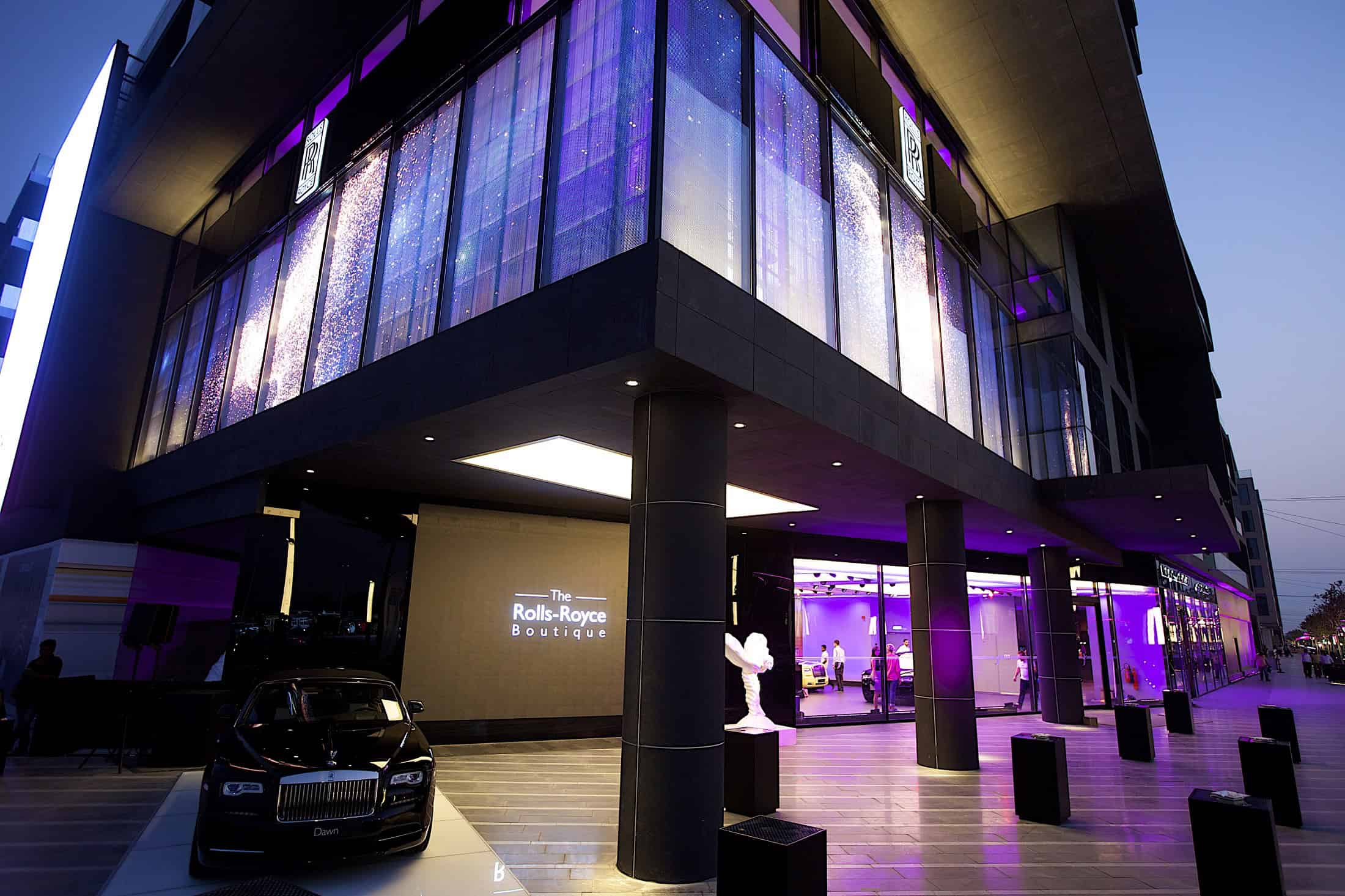 The facility spans 7,300 sq. ft. and features top-to-bottom vectorized pixel-animation screens on the external windows, visible to passers-by from the road and sidewalk. This being a Rolls-Royce showroom, visitors will be glad to learn that this is the only Boutique in City Walk that will have year-round valet parking.