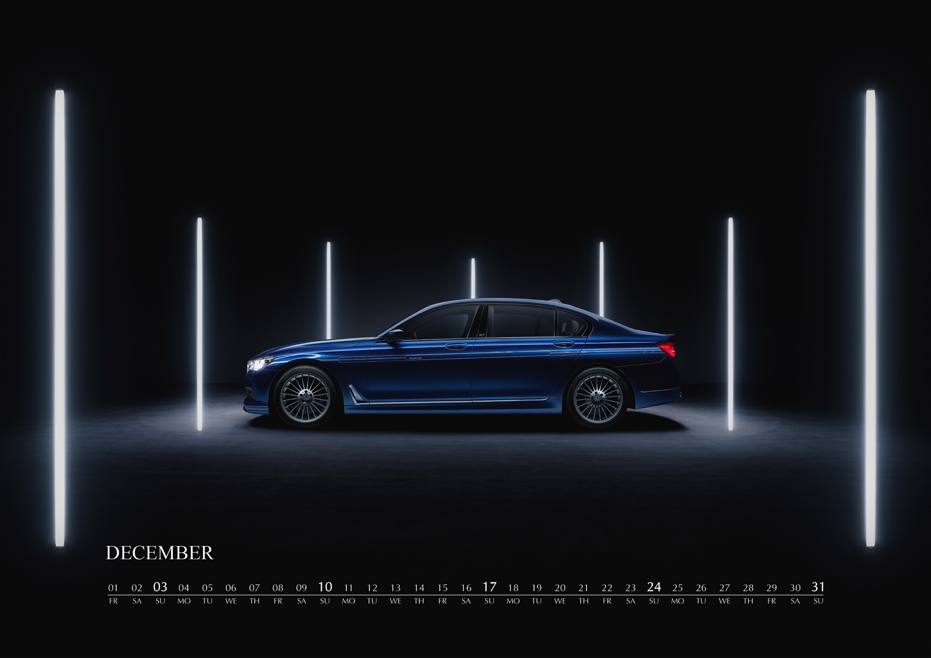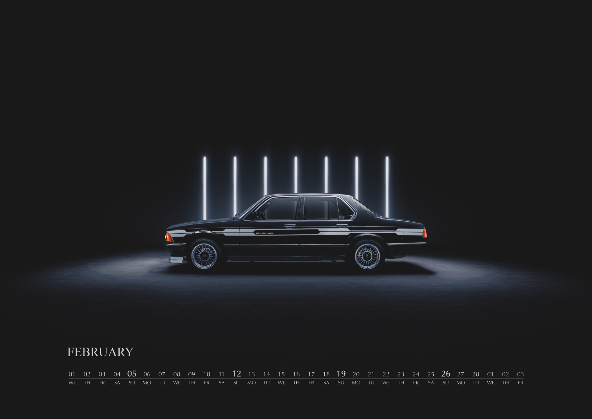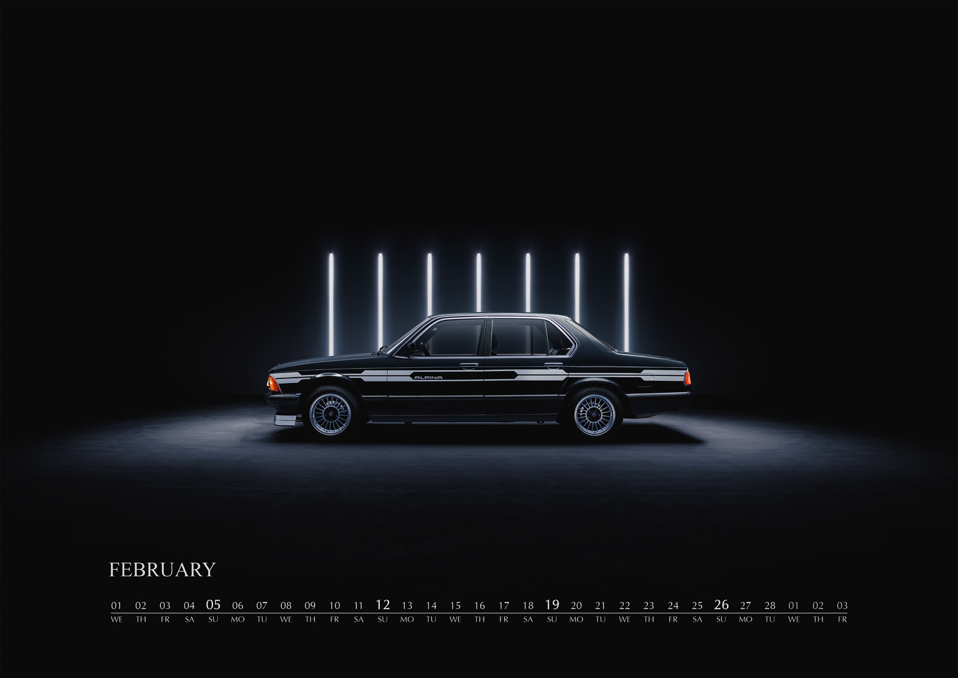 In 2017, the ALPINA wall calendar will be dedicated to the “Upper Class“ of luxury saloons. The new calendar features BMW ALPINA models based on the 7 Series, starting from 1977 and the BMW 733i with an ALPINA kit all the way to the present flagship, the BMW ALPINA B7 Bi-Turbo, which premiered at this year’s Geneva Auto Show. %he new wall calendar features six models of the 7 Series from Buchloe.
