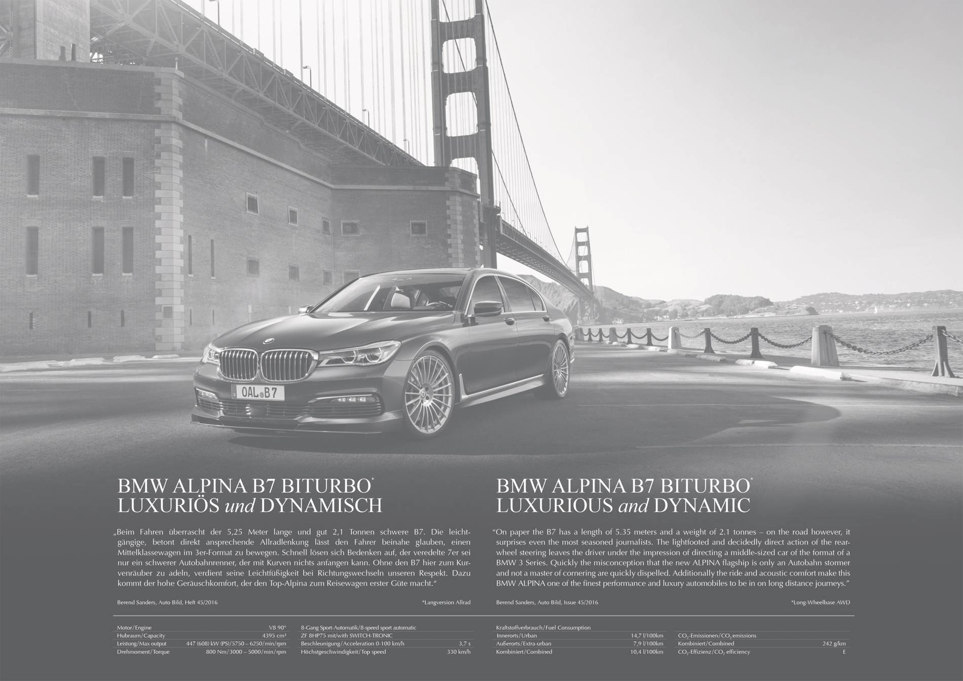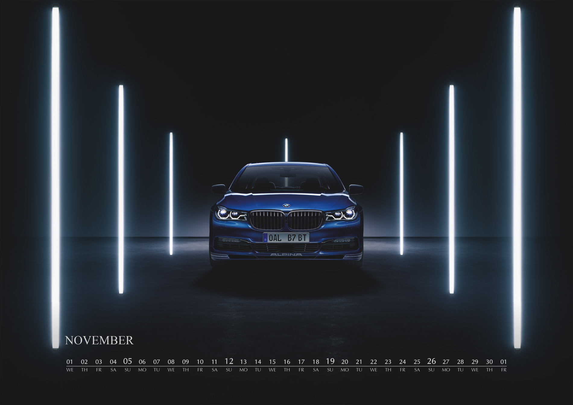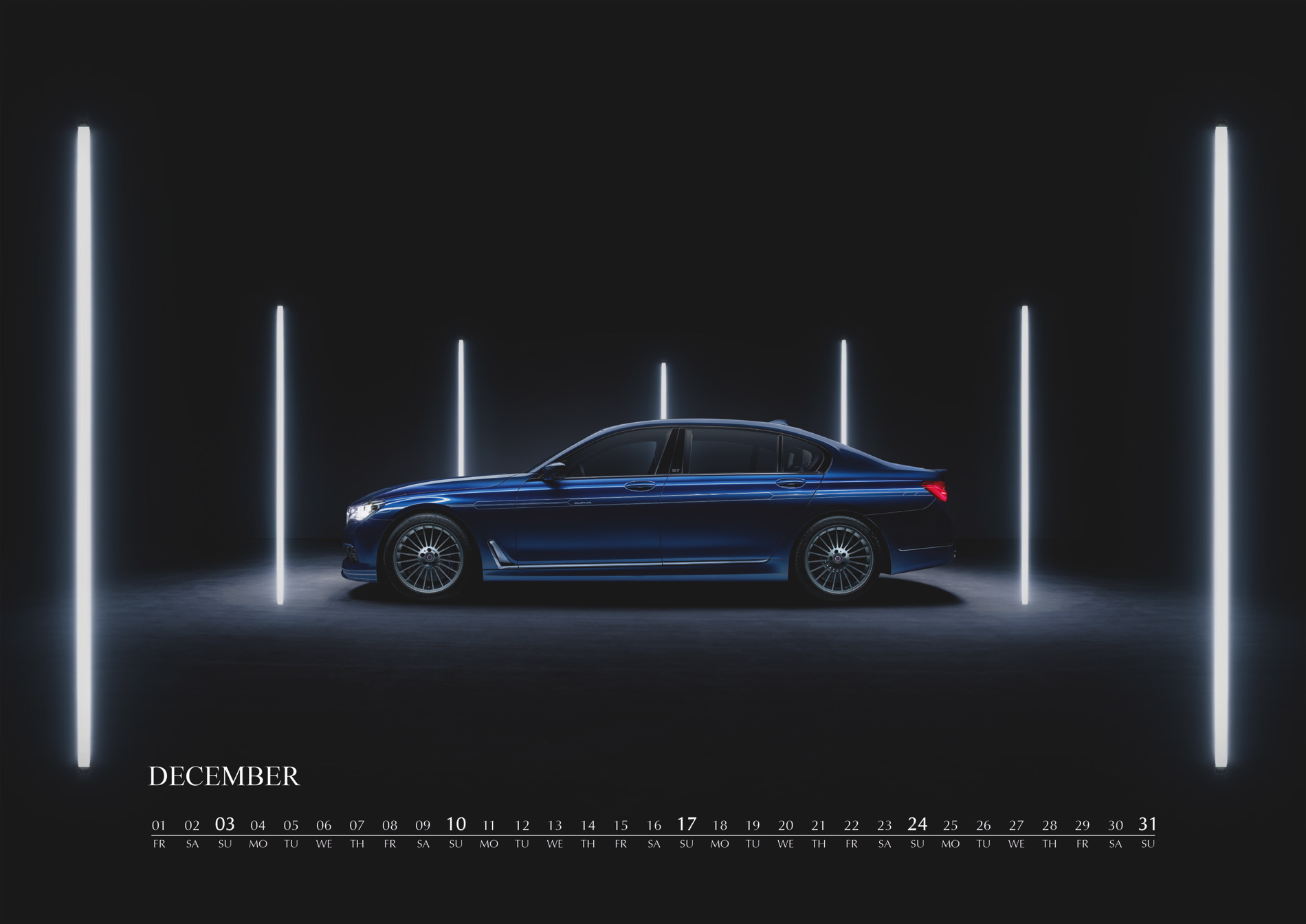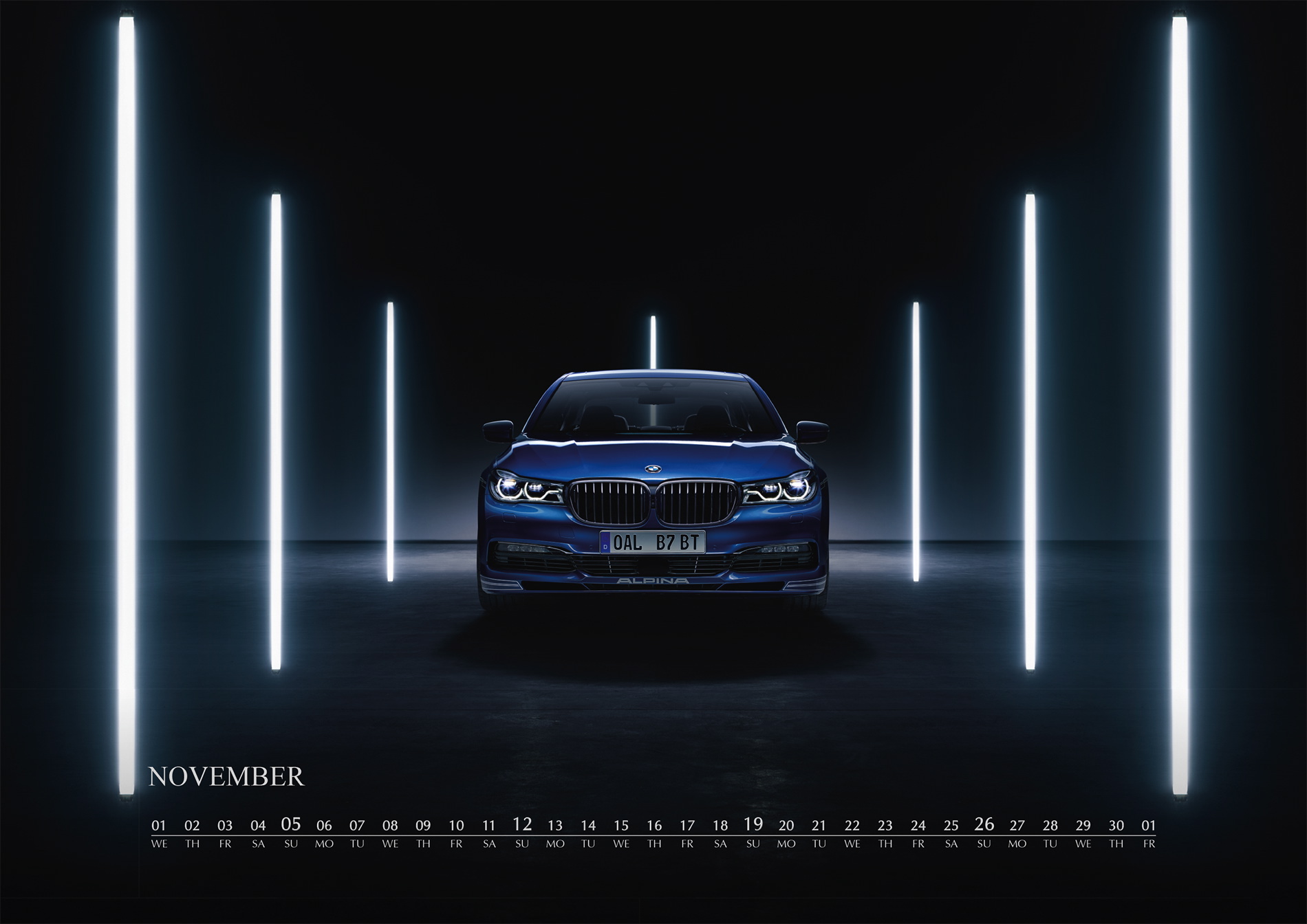 In 2017, the ALPINA wall calendar will be dedicated to the “Upper Class“ of luxury saloons. The new calendar features BMW ALPINA models based on the 7 Series, starting from 1977 and the BMW 733i with an ALPINA kit all the way to the present flagship, the BMW ALPINA B7 Bi-Turbo, which premiered at this year’s Geneva Auto Show. %he new wall calendar features six models of the 7 Series from Buchloe.