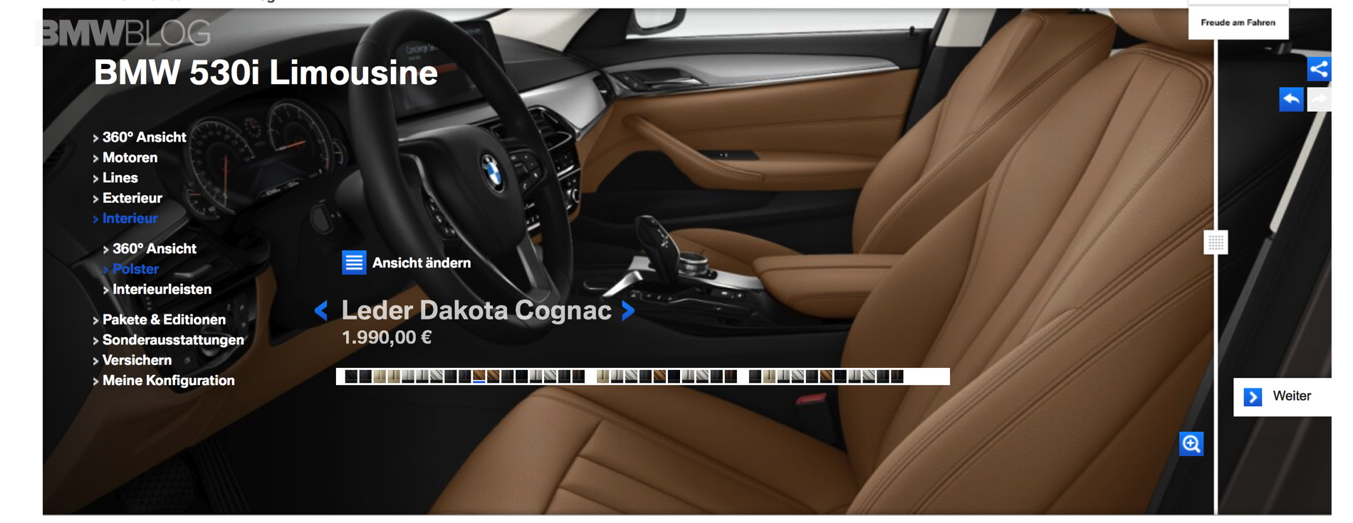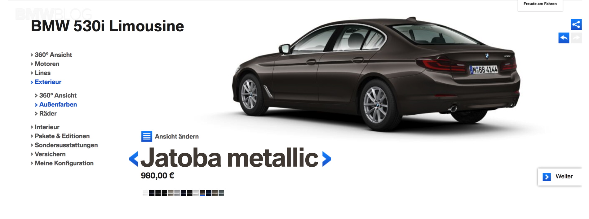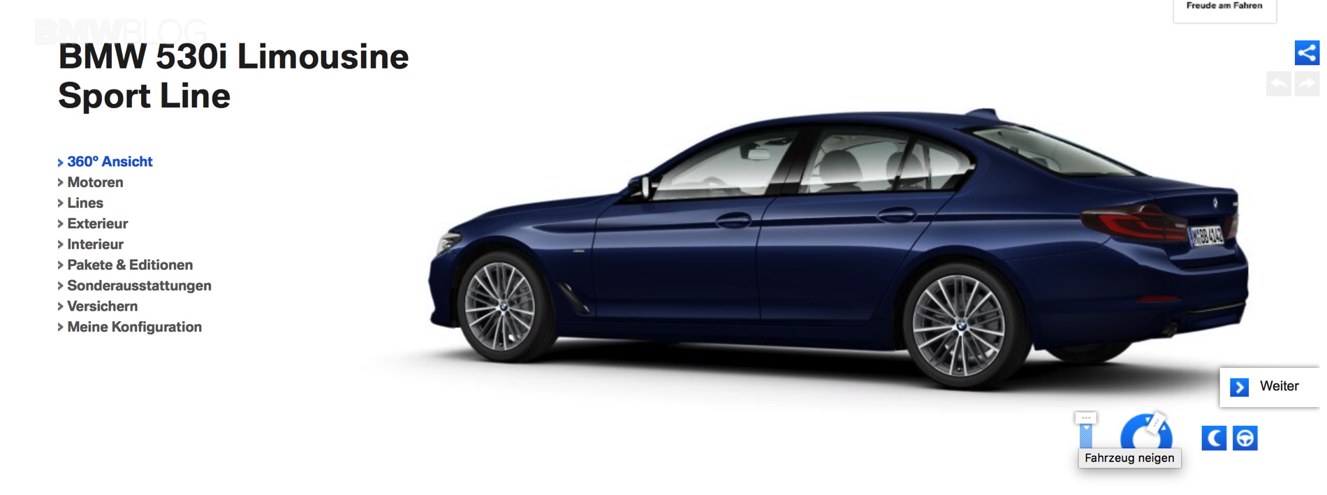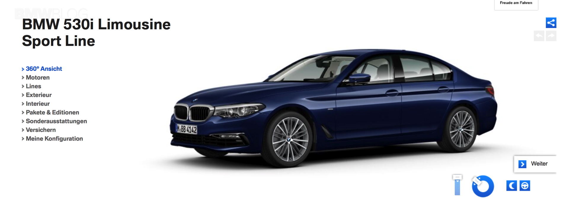 The online configurator of the new 2017 BMW 5 Series just went live on www.bmw.de. The seventh generation of the business saloon has been made available into the online configurator and can be adapted to their own ideas and color wishes.
