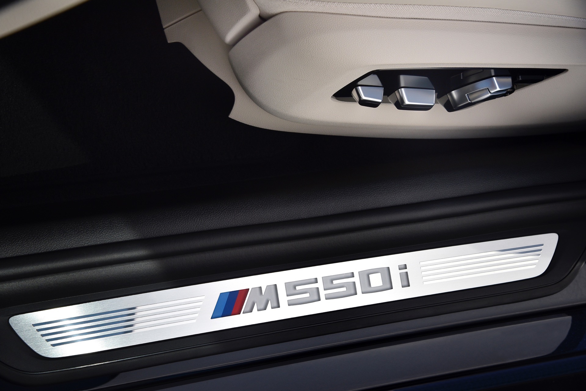 On the inside, “M550i xDrive” door sills are fitted, as well as the Multi-Contour sport seats in Black Dakota leather with blue contrast stitching as standard. It also gets the latest M-Sport steering wheel and aluminum pedals, which has become a hallmark of BMW M Performance vehicles.