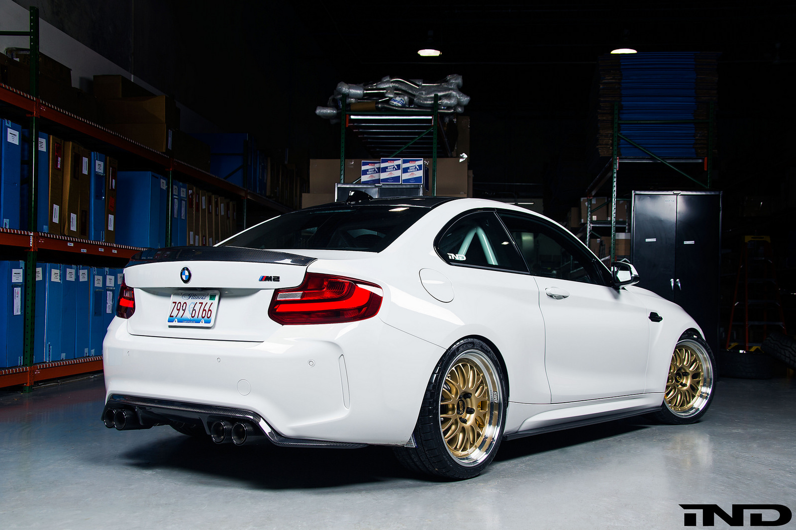 A few months ago, Chicago-based IND unveiled their highly awaited BMW M2 project. As often seen with their projects, the IND aero parts stand for simplicity and perfect fitment, and the aero program for the M2 makes no exception. The package includes a front carbon fiber lip, gloss black kidney grille surrounds, gloss black side gills, carbon fiber diffuser, matte black M2 logo and a rear spoiler also made of carbon fiber.