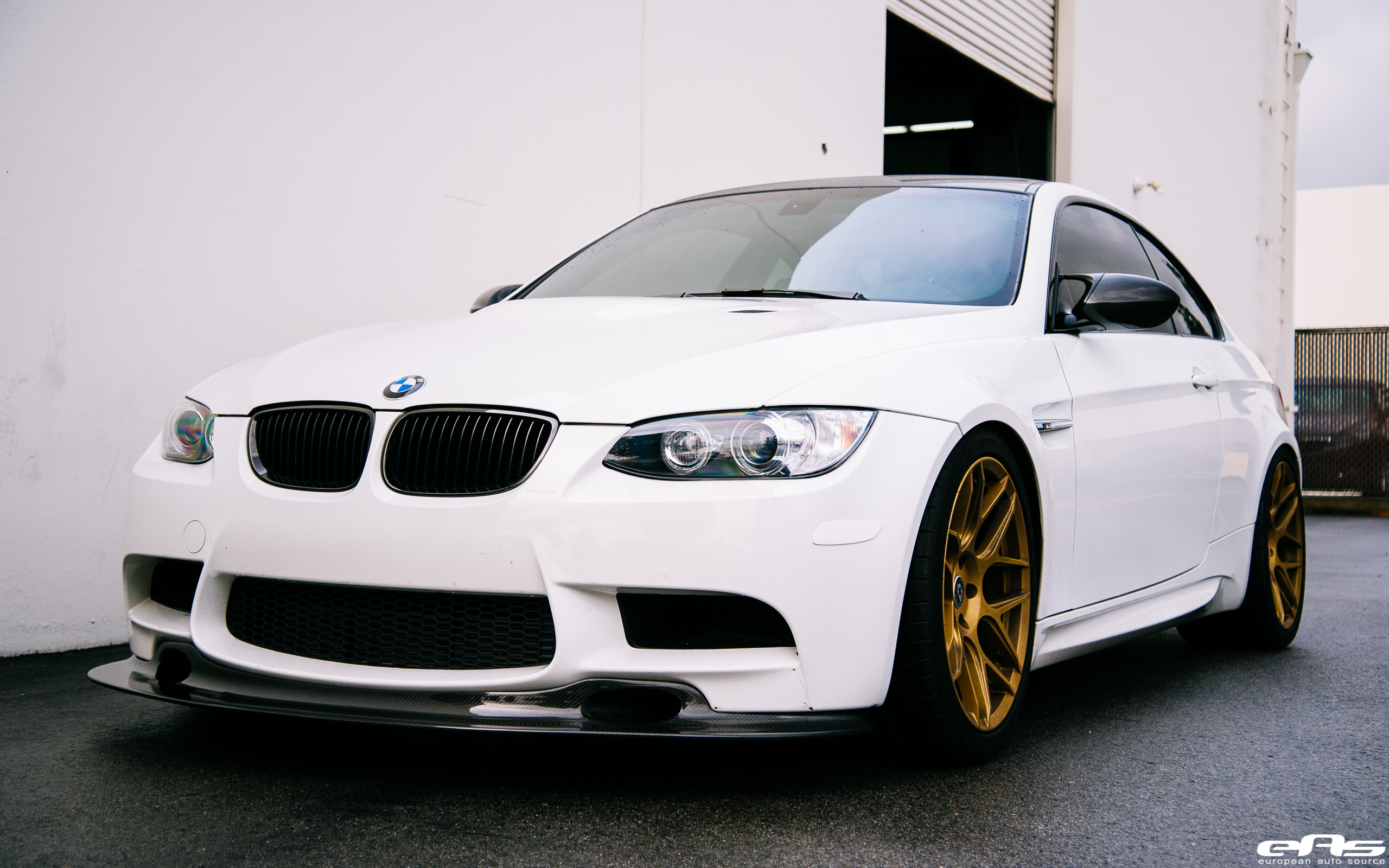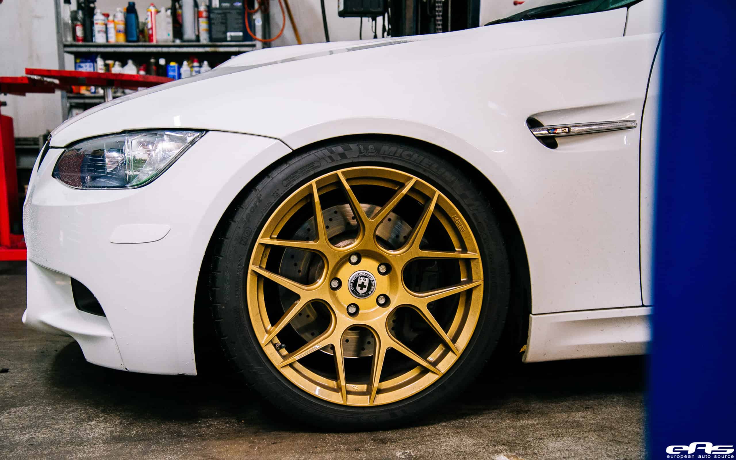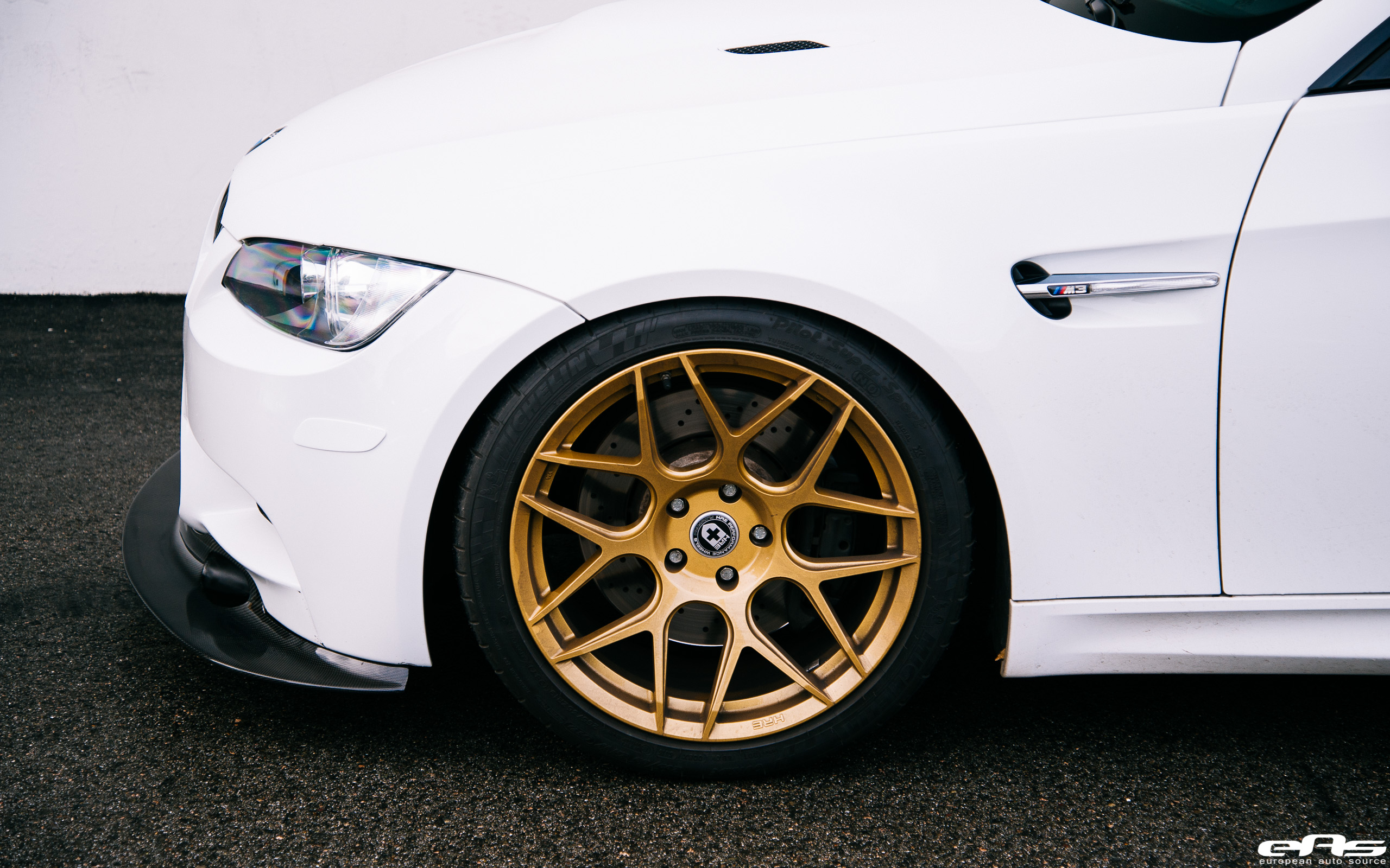After the spoiler was installed, it was time to add the remaining aftermarket touches. Namely, the owner opted for a set of Gold Finished HRE FF01 wheels. Some purists will likely cringe at the thought of a gold wheel, but the combination of Alpine White and Gold looks fits well on this E92 M3.