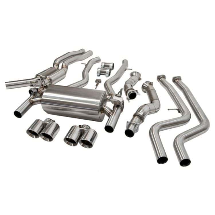 At the moment, VP Exhaust offers several exhaust options for BMWs, though they will obviously make an exhaust for whatever BMW you might have. But they do currently make a few BMW exhausts already. For instance, VP Exhaust currently offers a Valvetronic exhaust for the F82 BMW M4, though it will also fit the F80 BMW M3. The M4 exhaust is a 2.5 inch, TIG welded system with a smooth brushed finish. It’s also made from grade 304 stainless steel and is a de-cat system. The lack of catalytic converter means that it won’t pass MOT, so it’s best for track use. However, it is a fully-functioning Valvetronic setup that will work with the BMW M4’s adjustable driving modes.