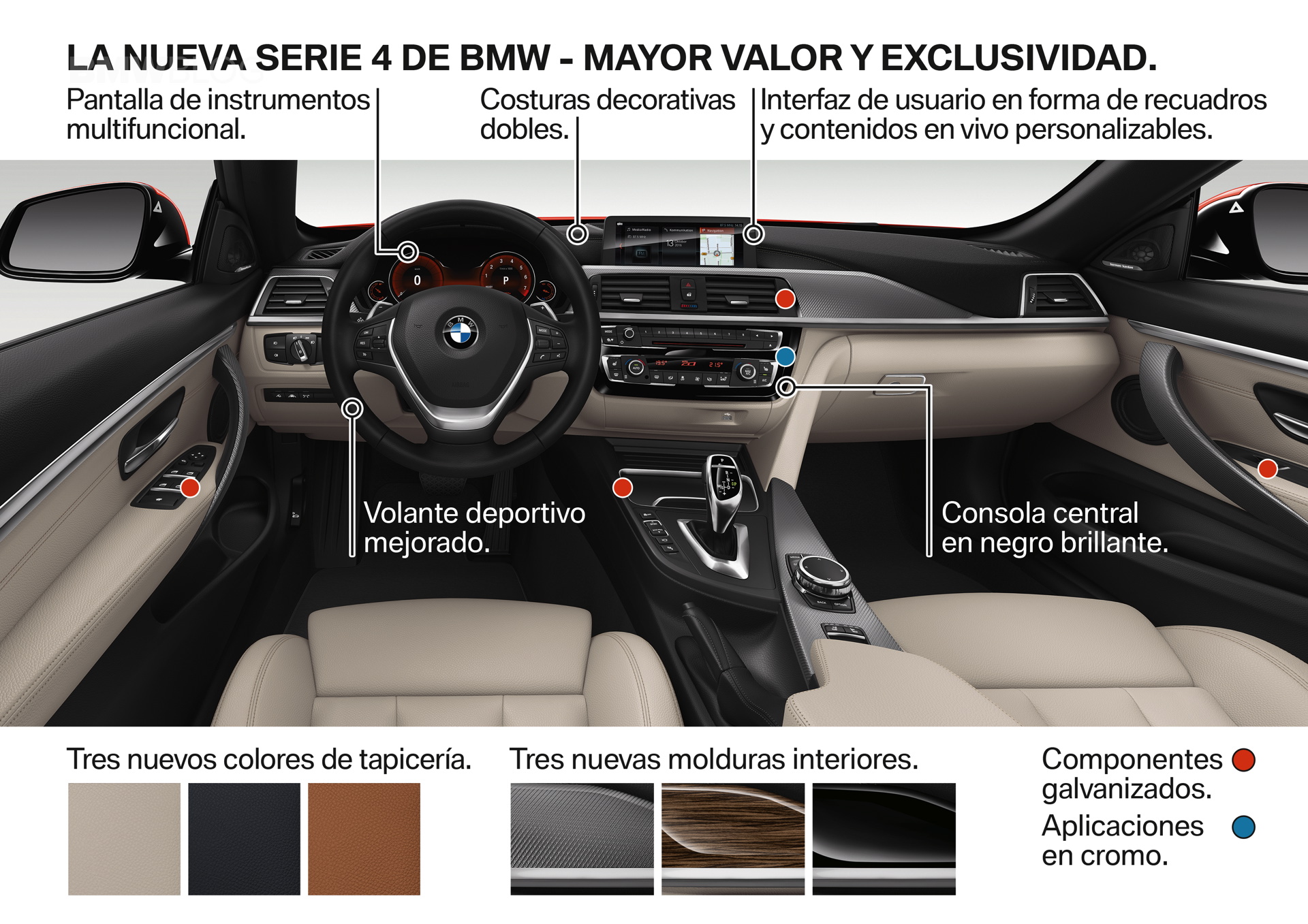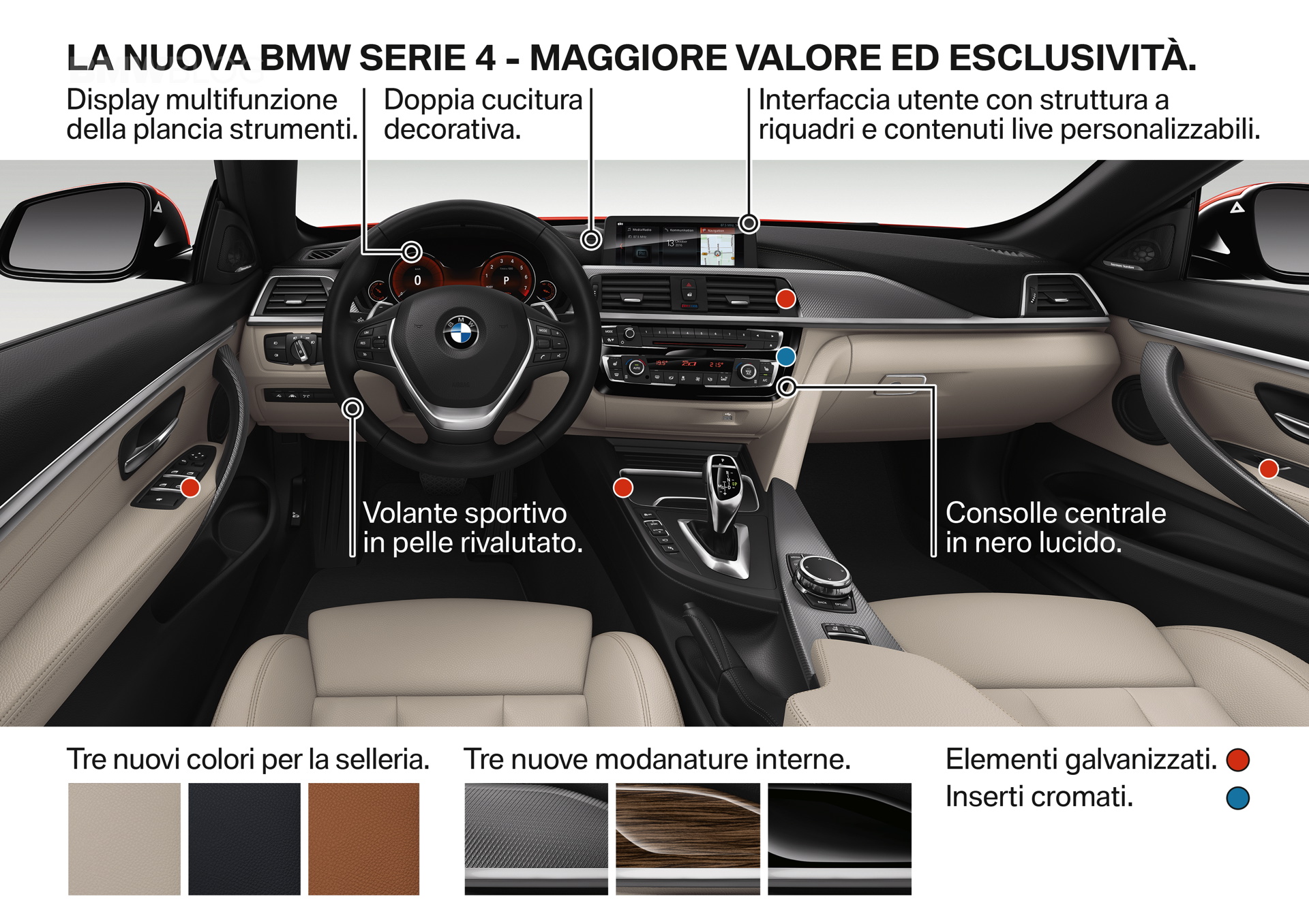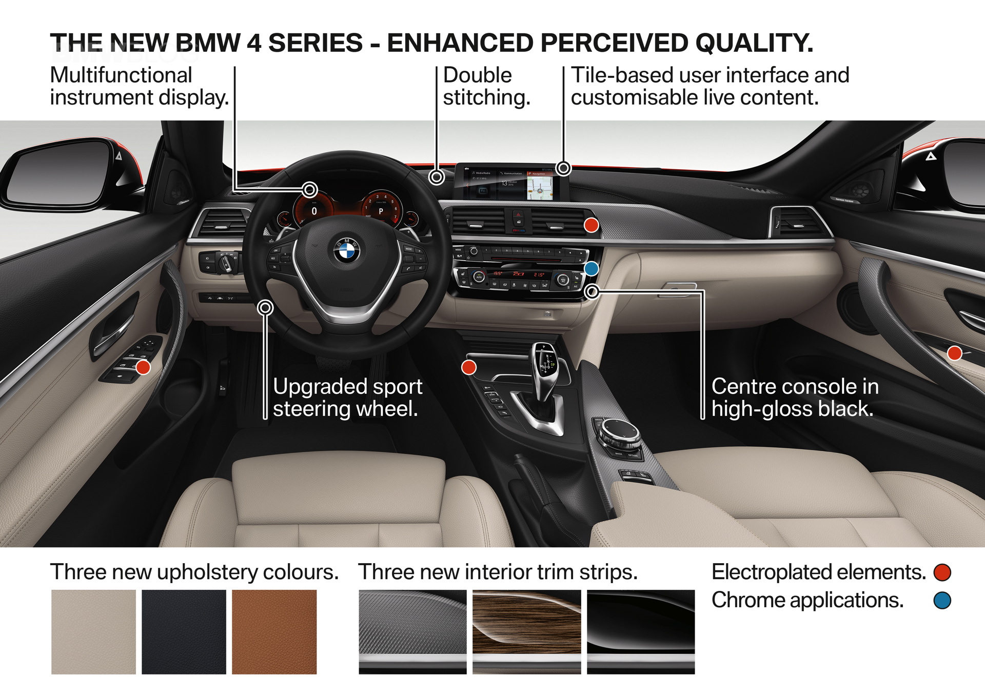 In the central infotainment display on the center console, the 2017 BMW 4 Series Facelift 2017 utilizes, as expected, the latest iDrive generation with tile optics. New upholstery colors and interior trim, as well as some minor improvements in haptics and looks round off the upgraded interior.