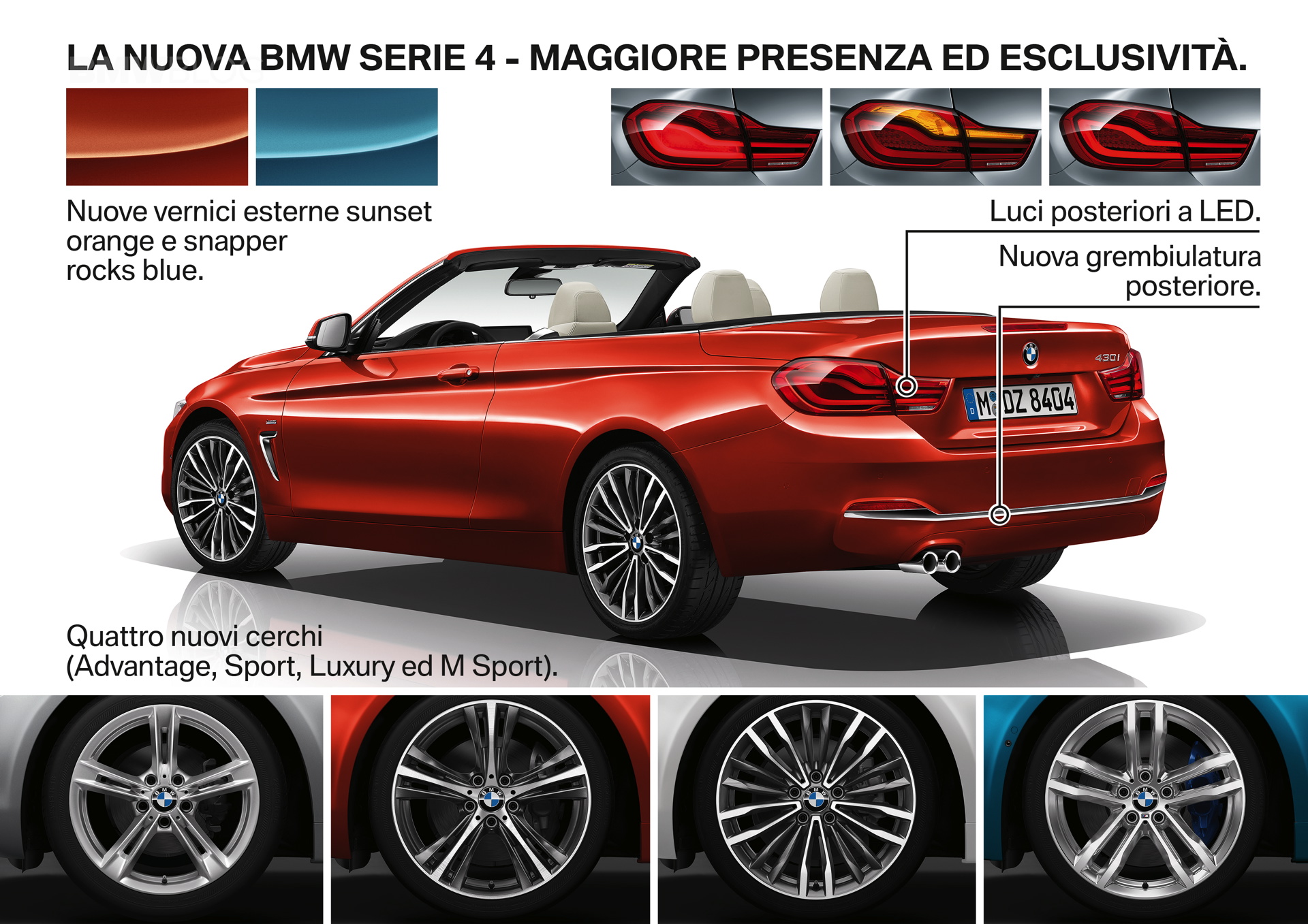 The two new finishes are exclusively reserved for the BMW 4 Series and provide a particularly sporty touch: The first pictures of the revised BMW 4 Series Coupe (F32 LCI) show the new color Snapper Rocks Blue, with its turquoise blue. And the first pictures of the refreshed convertible show, the also new, Sunset Orange.