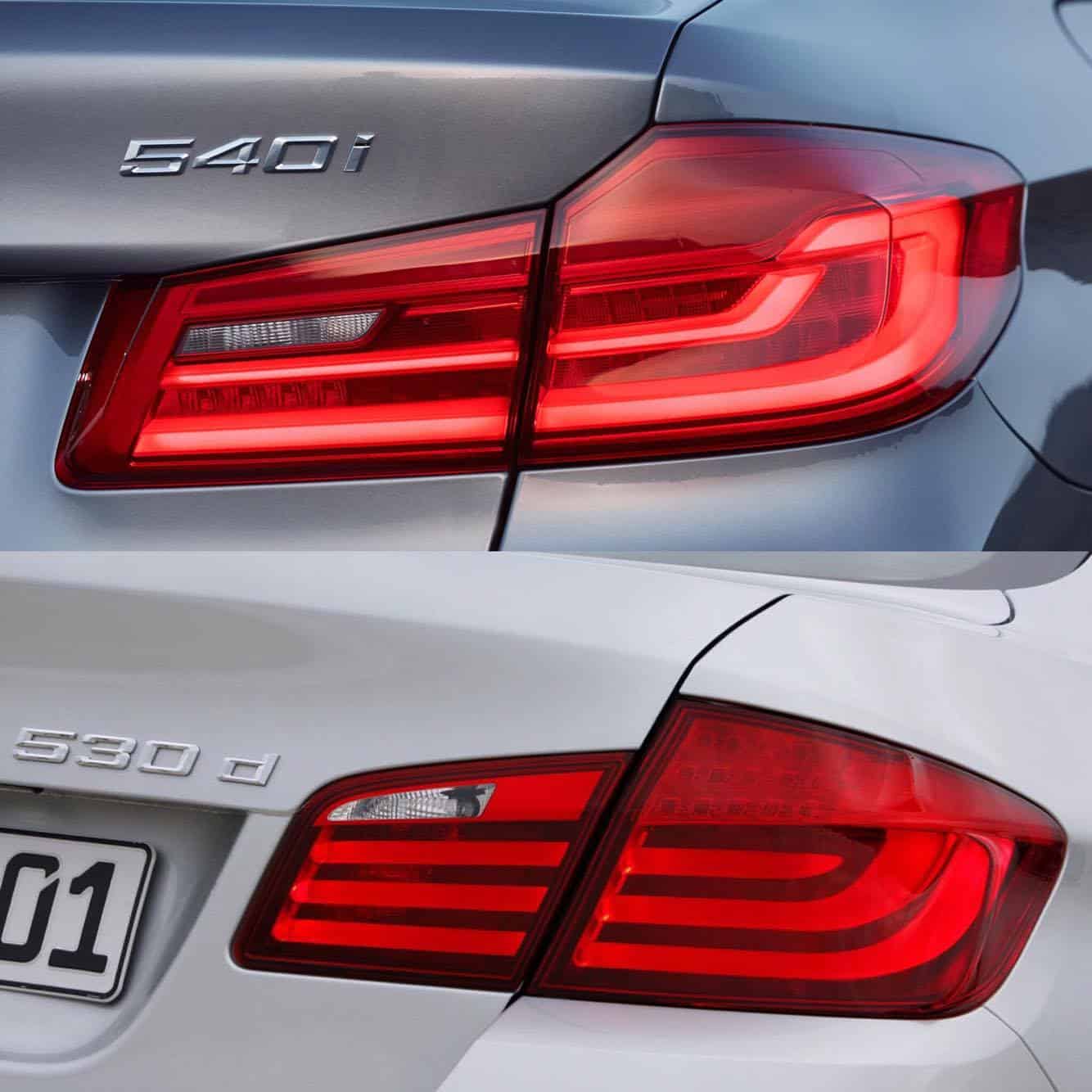 In the rear, the wide, “L-shaped” taillights reach all the way to the outer sides of the car – even more than the previous 5 Series – increasing visual width. Along with that, the low-slung rear decklid give it a lower look and a sportier stance.