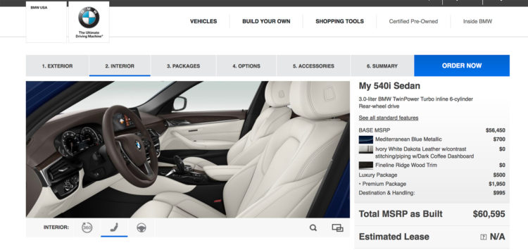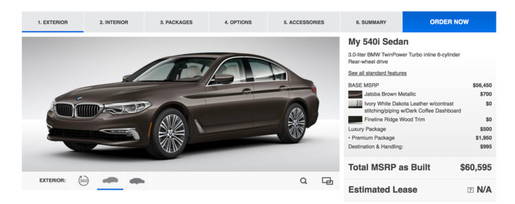 The online configurator for the new 2017 BMW 5 Series is now available on www.bmwusa.com. As always, the configurator gives the ability to full customize your BMW, based on the features and options offered by the specific market, in this case, US.