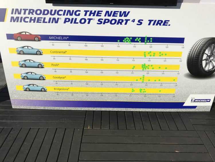 We tested it against all of its major competitors through an autocross circuit, including the new Continental ContiSport, Goodyear Eagle F1, Bridgestone Potenza Pole Position and Pirelli P Zero. In all tests, the test car was a BMW 340i. Since testing can be often subjective, Michelin also used an independent testing agent to pit the Pilot Sport 4 S against every key rival in dry braking, wet braking, and dry handling. In all these areas, the new PS4S came out on top.