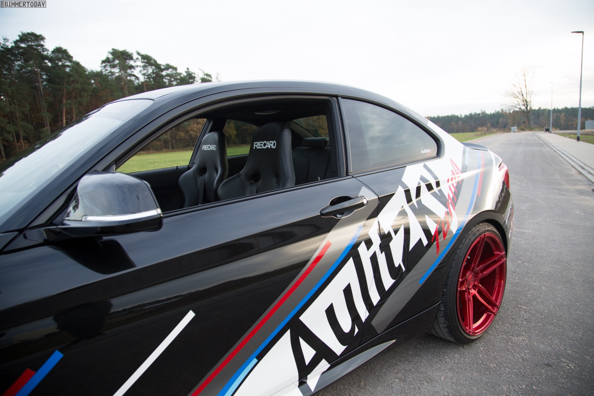 In the interior, the 620-hp-M2 remains fairly untouched, but the light-seat covers from Recaro and the performance steering wheel with Alcantara cover underline the seriousness of the tuning project.