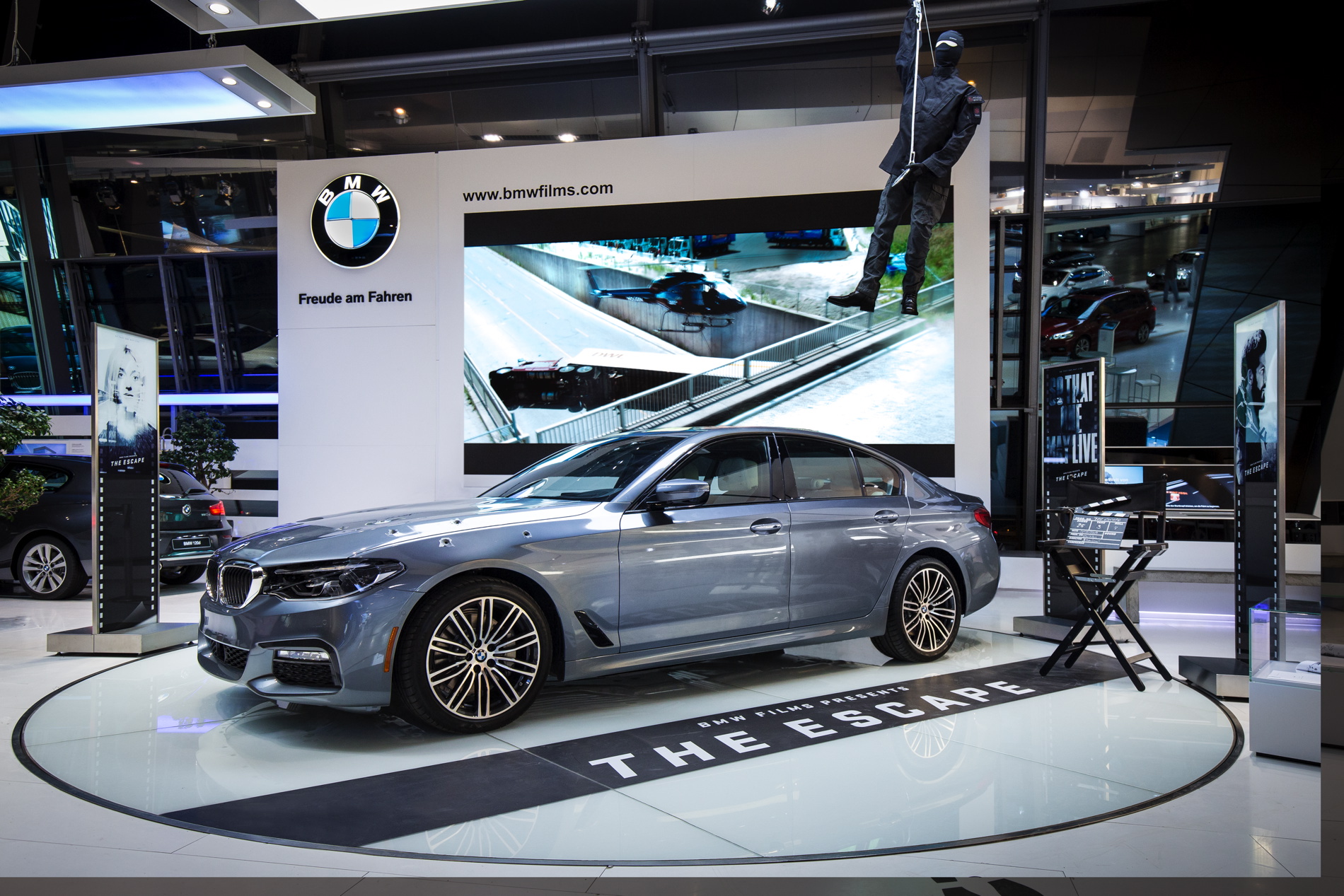 Saturday saw the launch of the new BMW 5 Series sedan. At the same time, BMW Welt is devoting an exclusive special exhibition to the world’s most success business sedan. Visitors have the opportunity not only to see two models up close but also to experience the new technical features at interactive stations. And film fans have the chance to view the new BMW film “The Escape” and see the actual car used in the film along with several props.